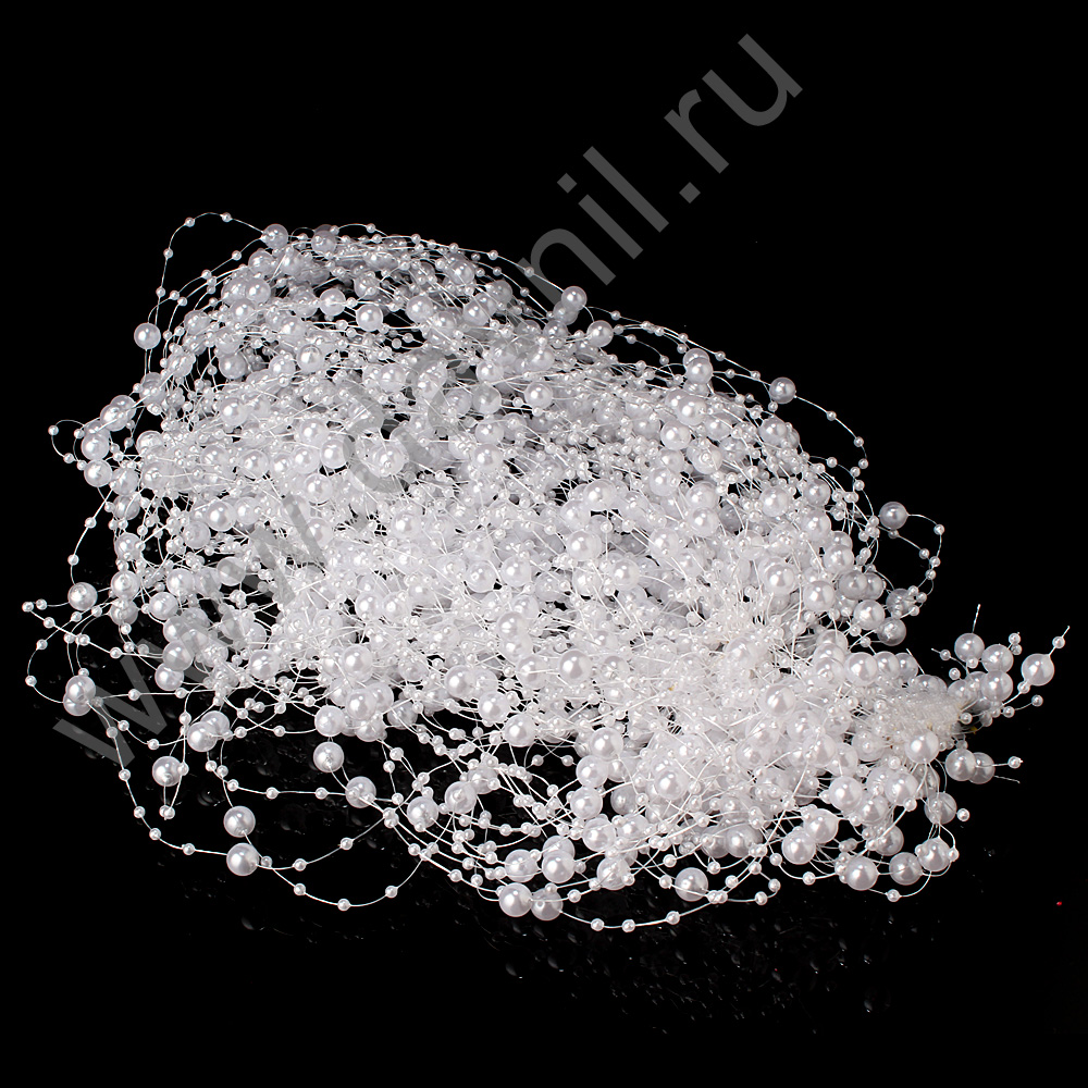 Бусины на леске под жемчуг 8 мм 1,3 м 40 шт белые 03