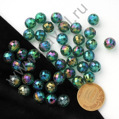Бусины акрил гранёные круглые хамелеон d=10 мм 50 гр бирюзовые