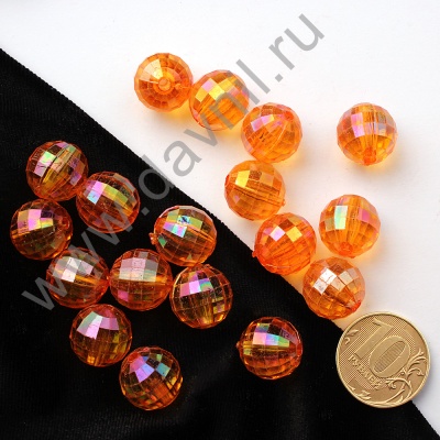 Бусины акрил гранёные круглые хамелеон d=14 мм 50 гр красные