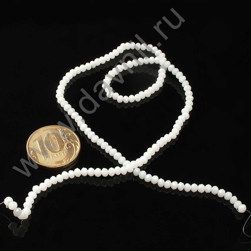Бусины на леске стеклянные граненые 4 мм 110 шт белый перламутр 239