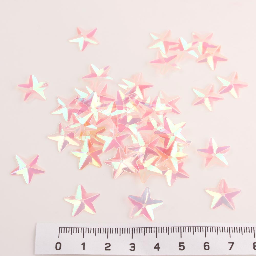 Пайетки пришивные звёздочка 15 мм 50 гр голограмма персиковые