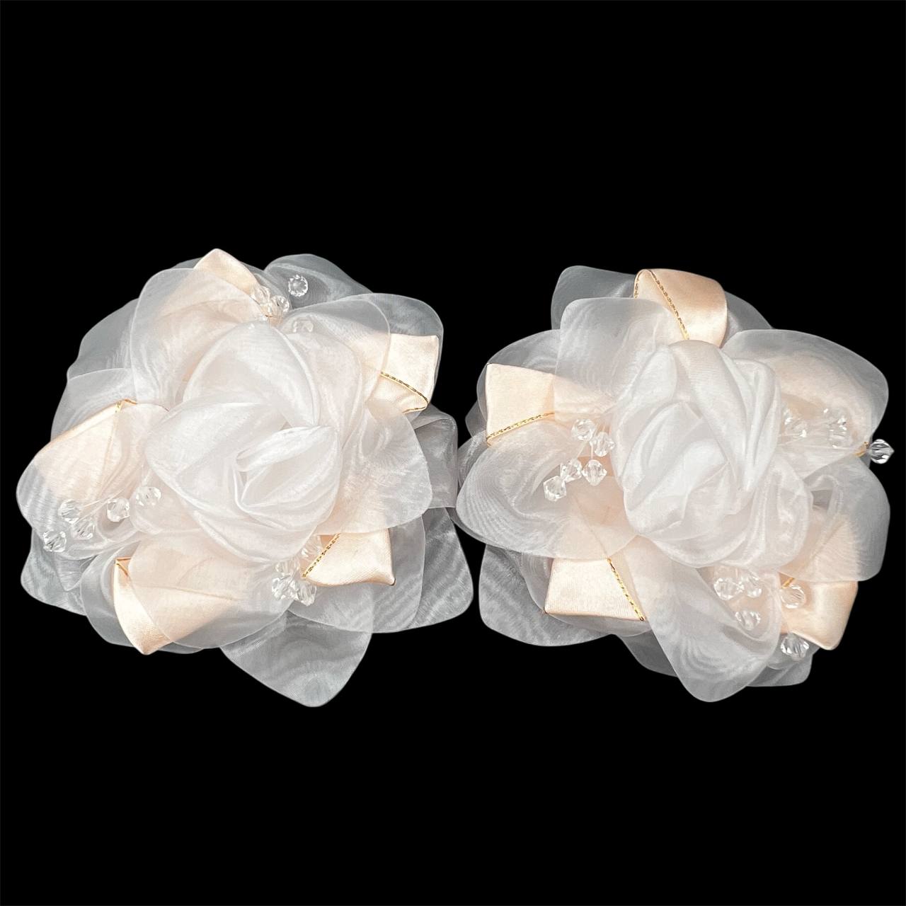 Бант на резинке "Надежда" 18 см 2 шт белый с цветной вставкой персиковый