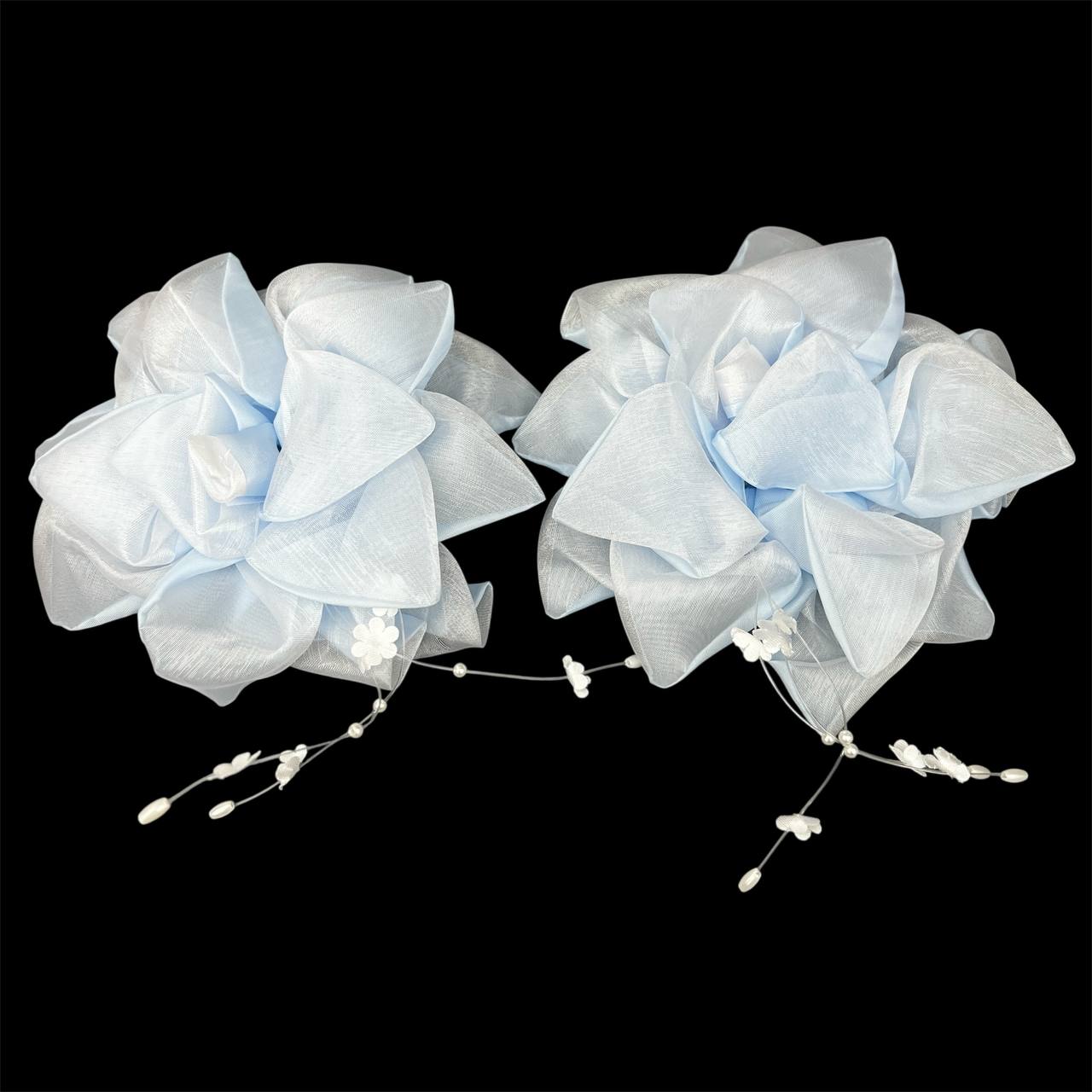 Бант на резинке "Надежда" 18 см 2 шт белый с цветной вставкой синий