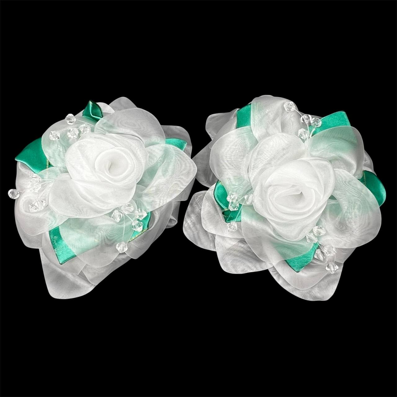 Бант на резинке "Надежда" 18 см 2 шт белый с цветной вставкой мятный