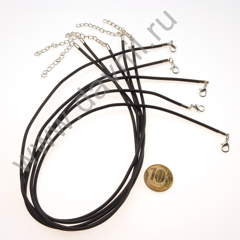 Шнур каучуковый на шею 38 см 10 шт 2 мм чёрный
