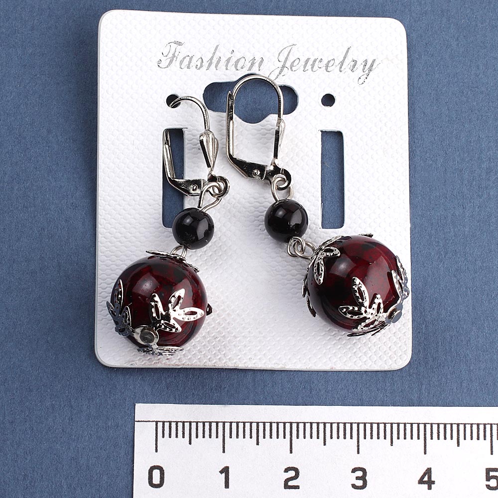Серьги пресованный шарик 12 мм 1 пара имитация камня яшма