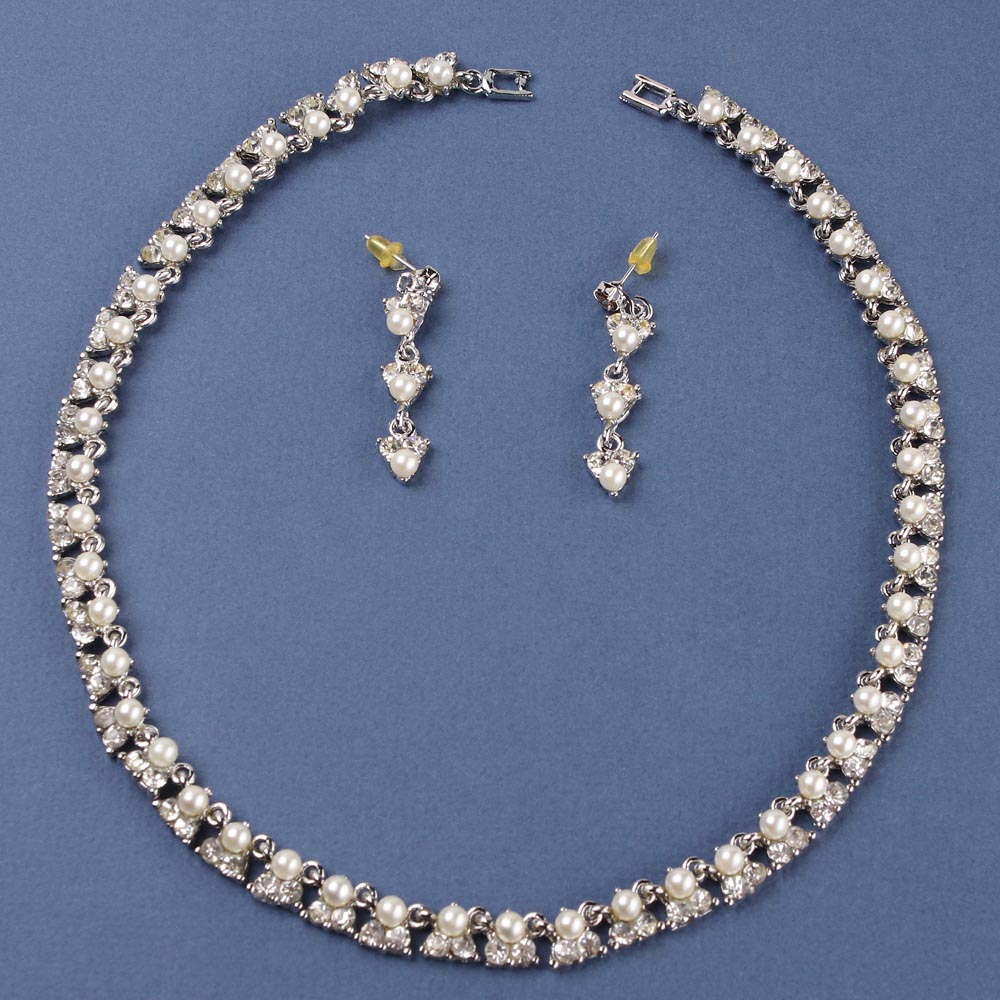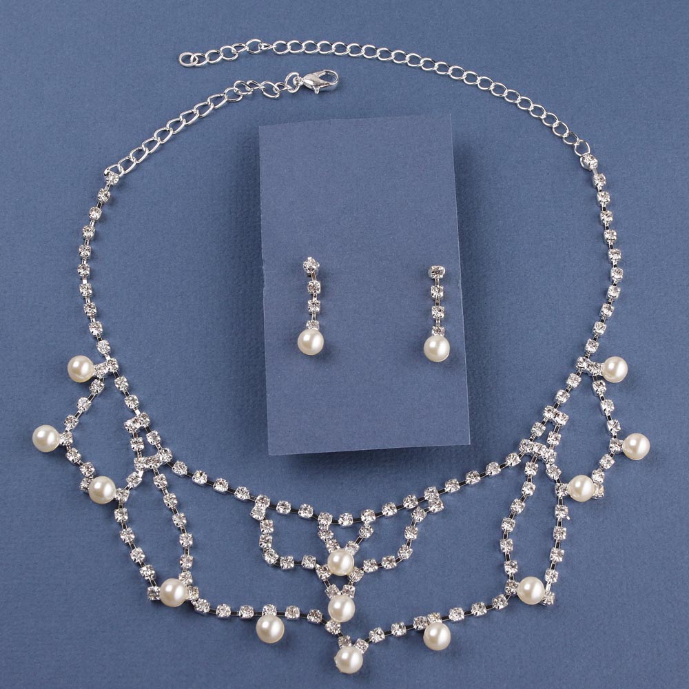 Серьги под серебро с белыми стразами три бусинки под жемчуг