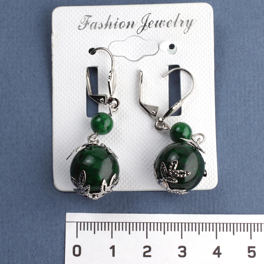 Серьги пресованный шарик 12 мм 1 пара имитация камня малахит