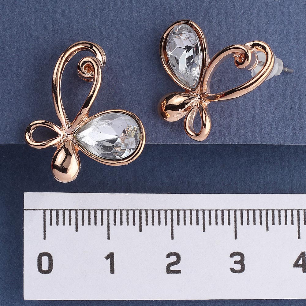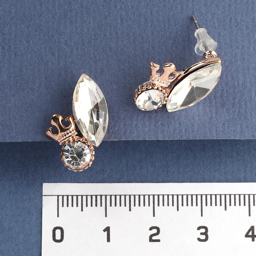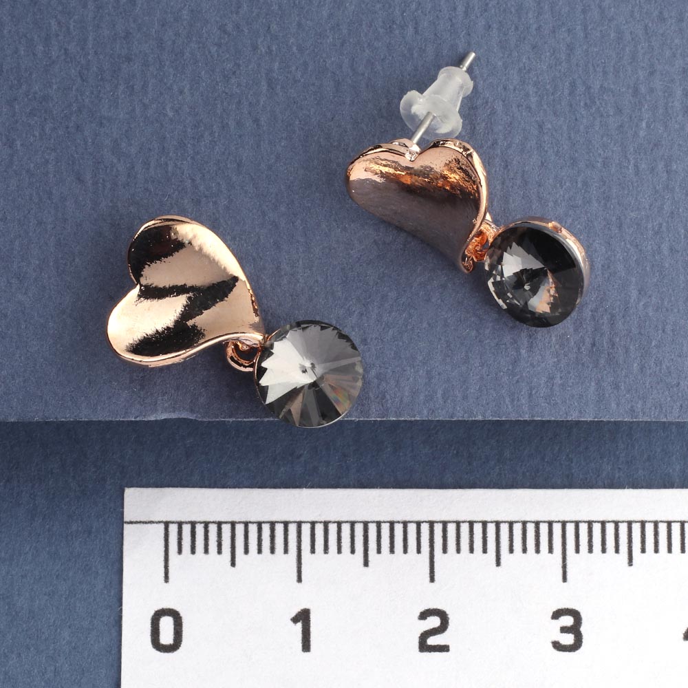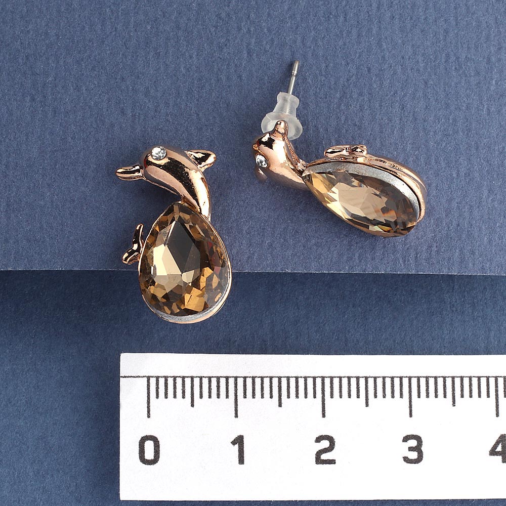 Серьги гвоздик под золото дельфин коричневые стразы капля