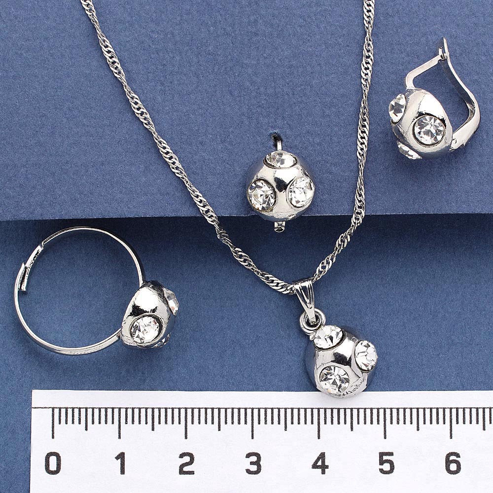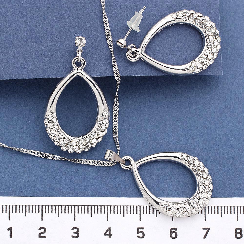 Набор серьги кулон на цепочке кольцо под серебро со стразами