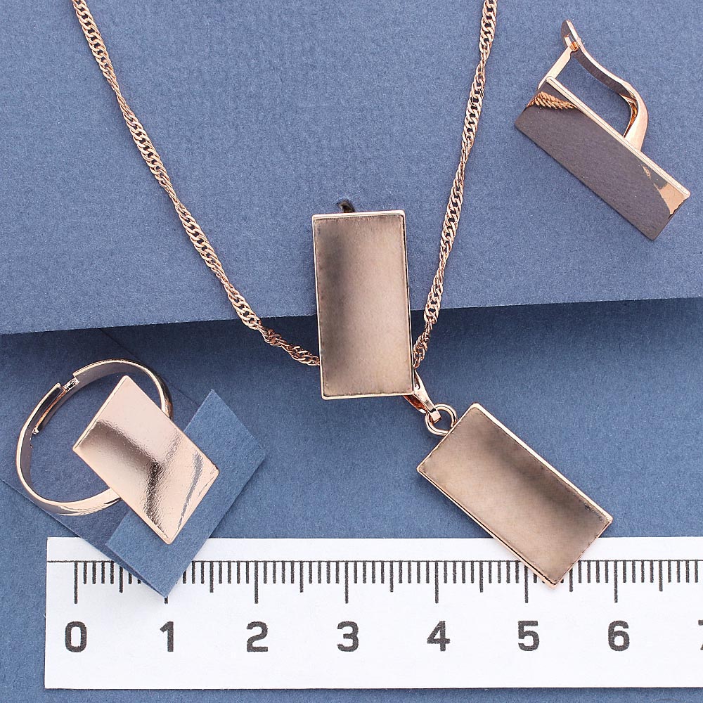 Набор серьги кулон на цепочке кольцо под золото прямоугольные