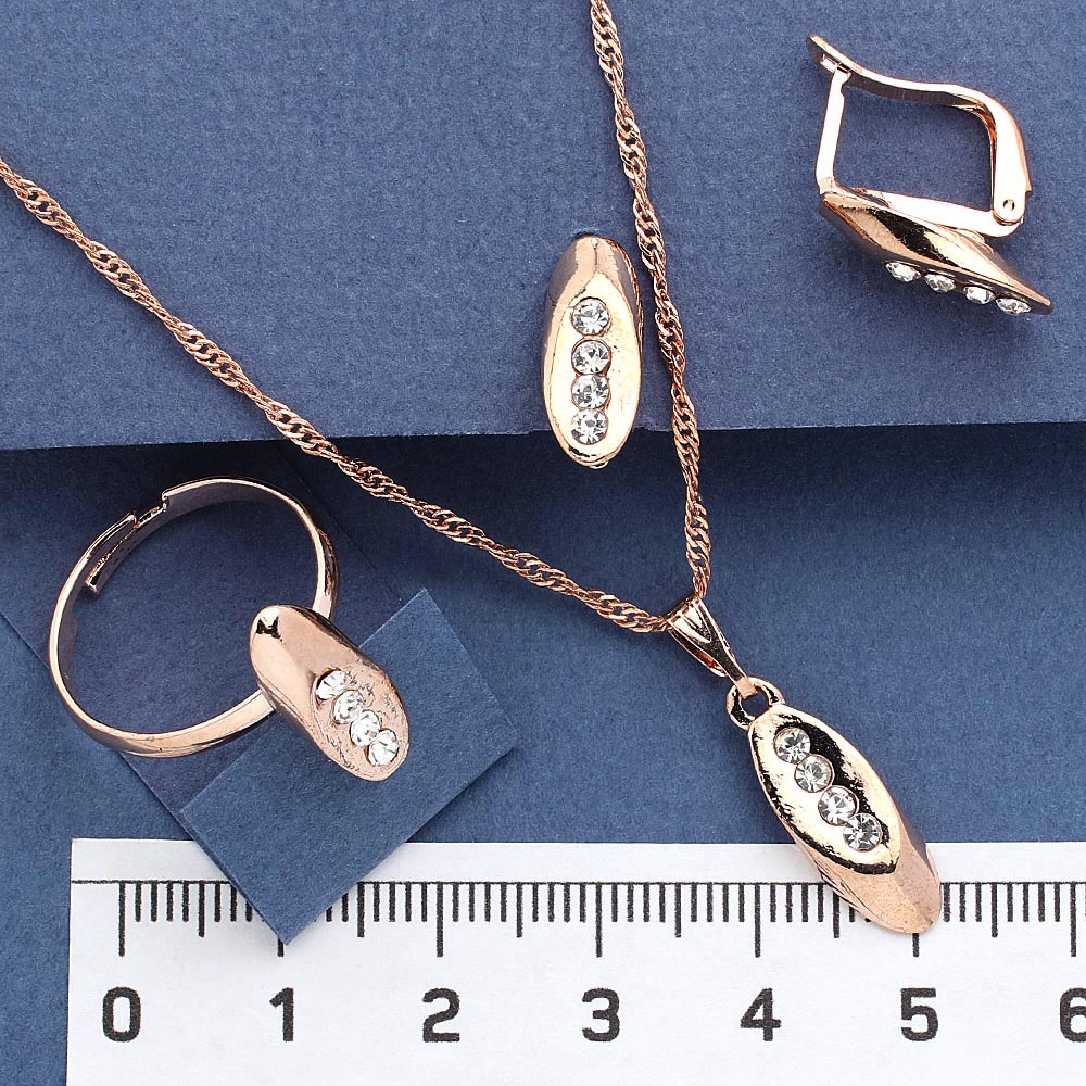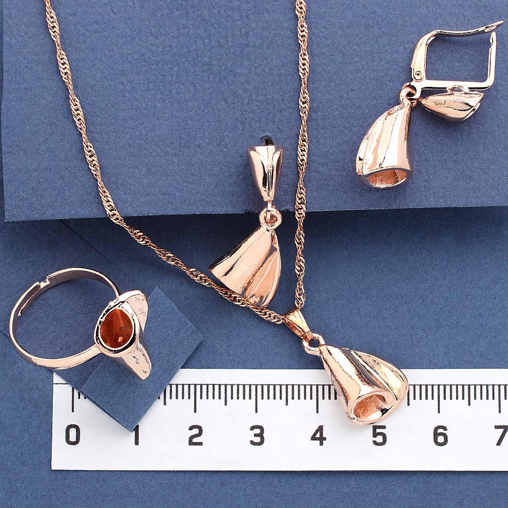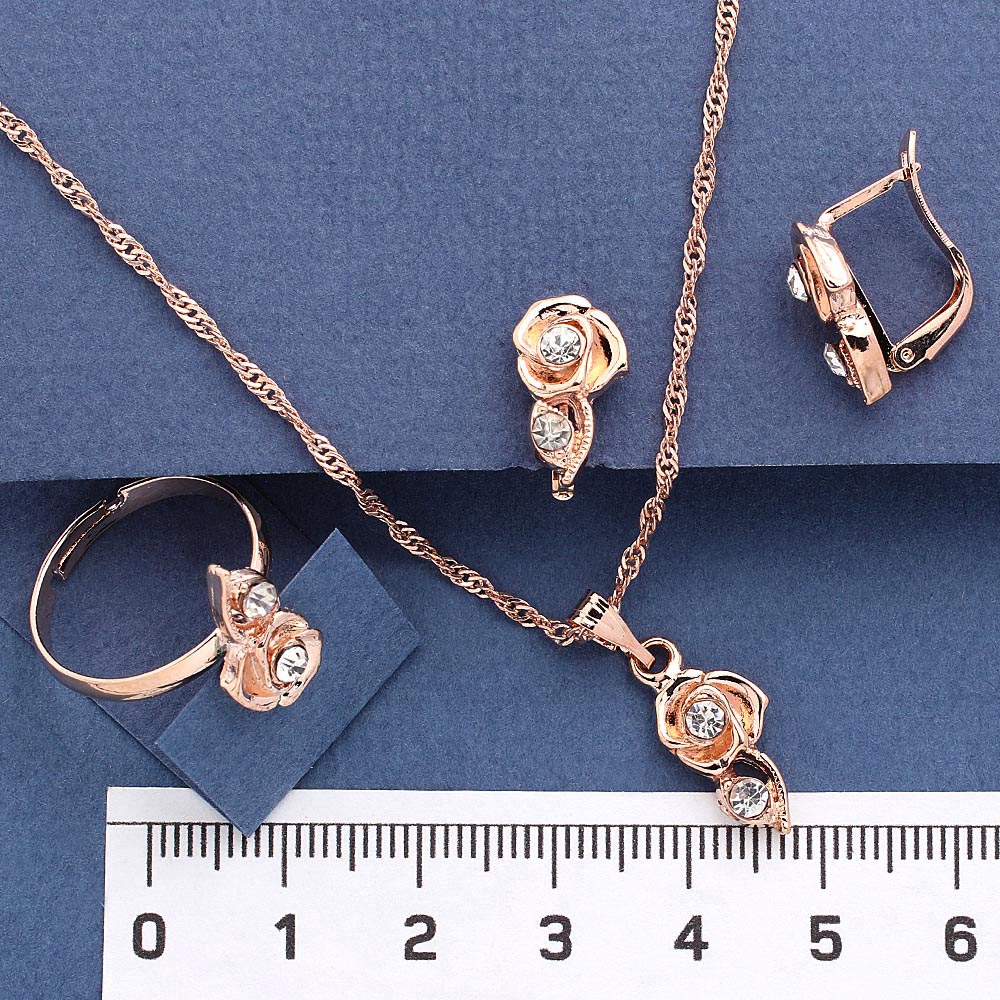 Набор серьги кулон на цепочке кольцо под золото со стразами