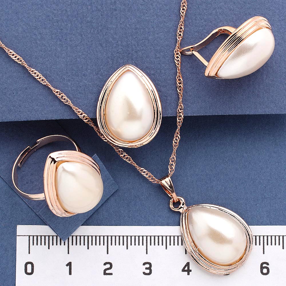 Набор из трех предметов под золото с бусиной капля под жемчуг