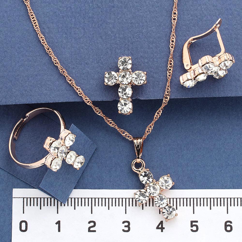 Набор серьги кулон на цепочке кольцо под золото крестики со стразами