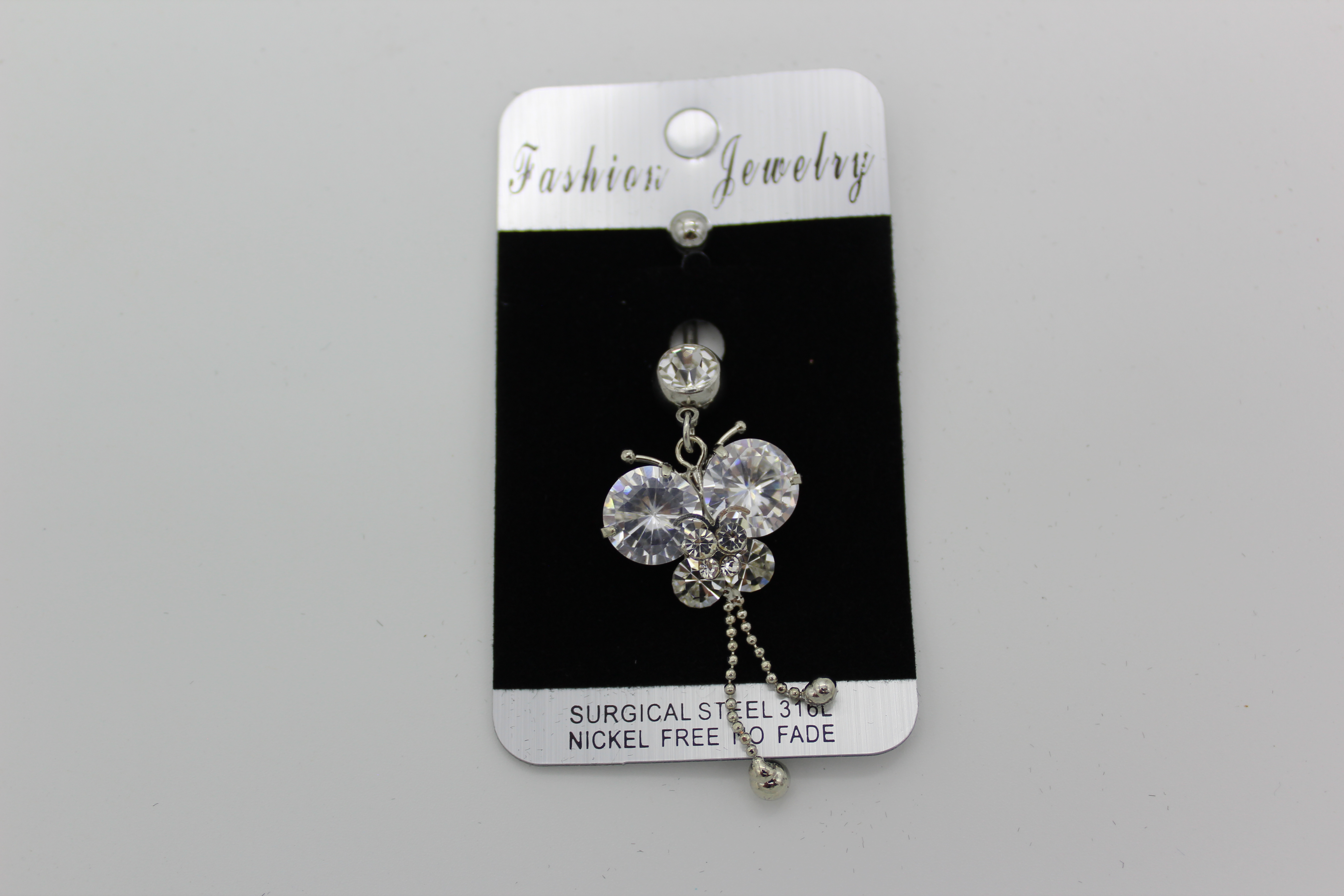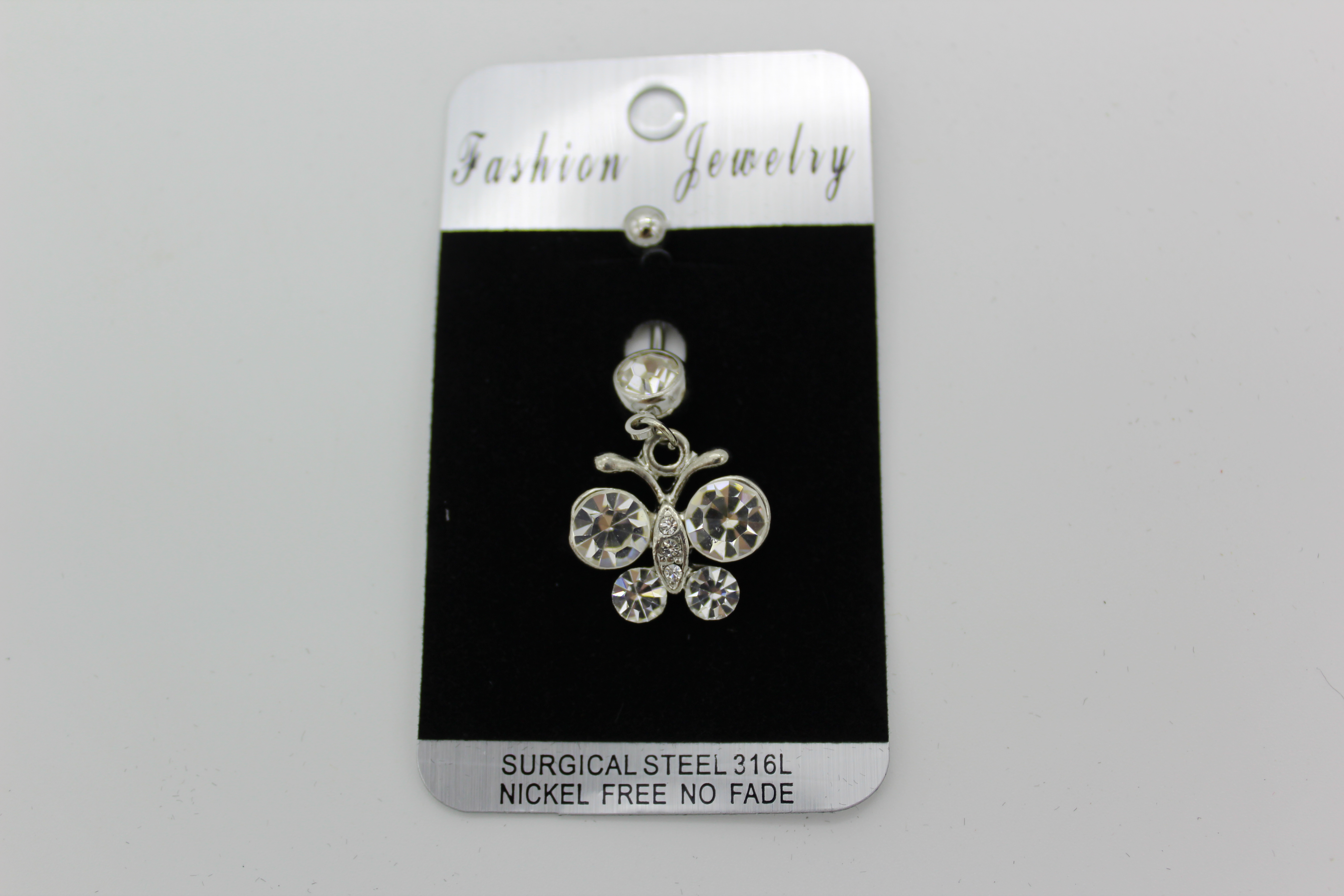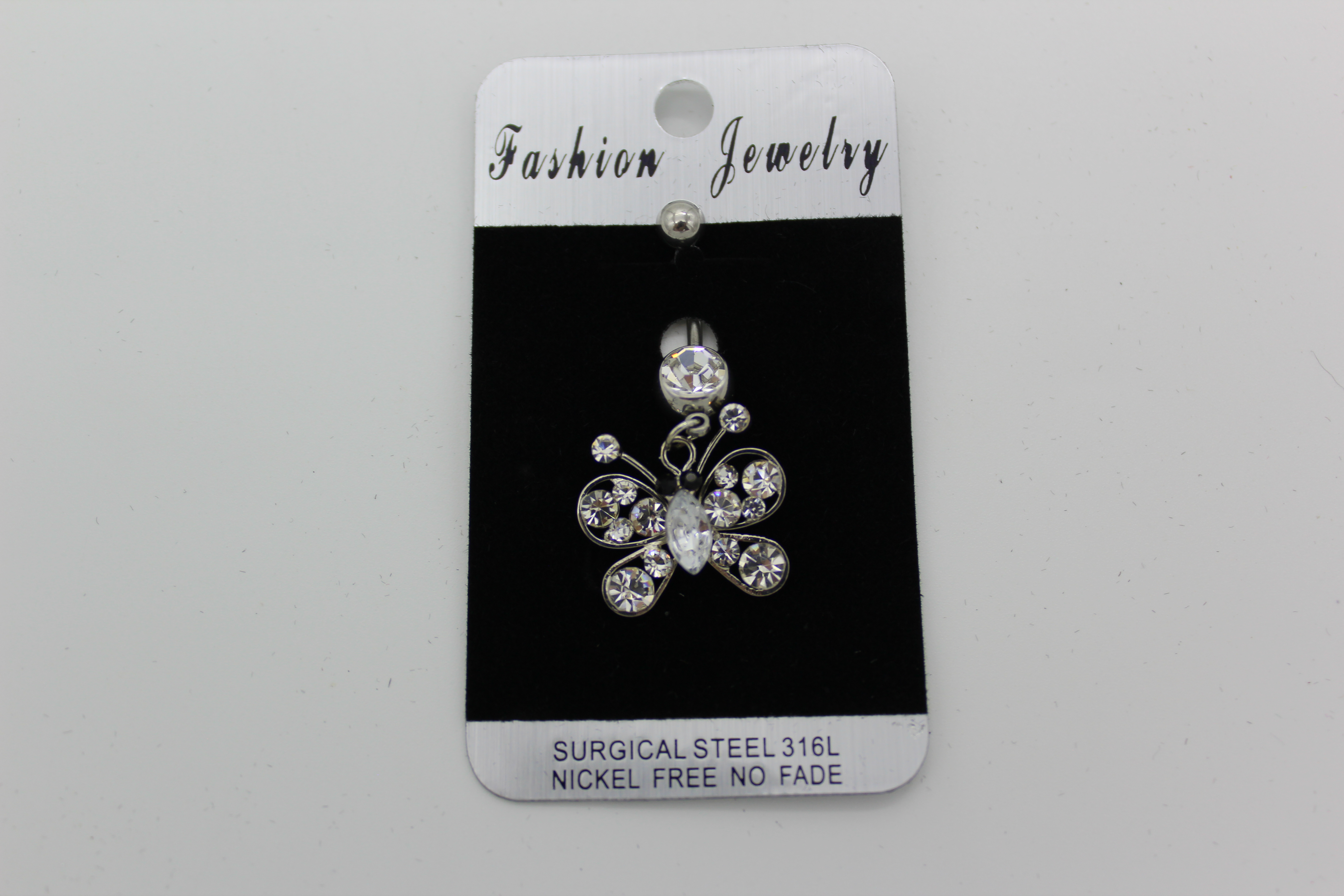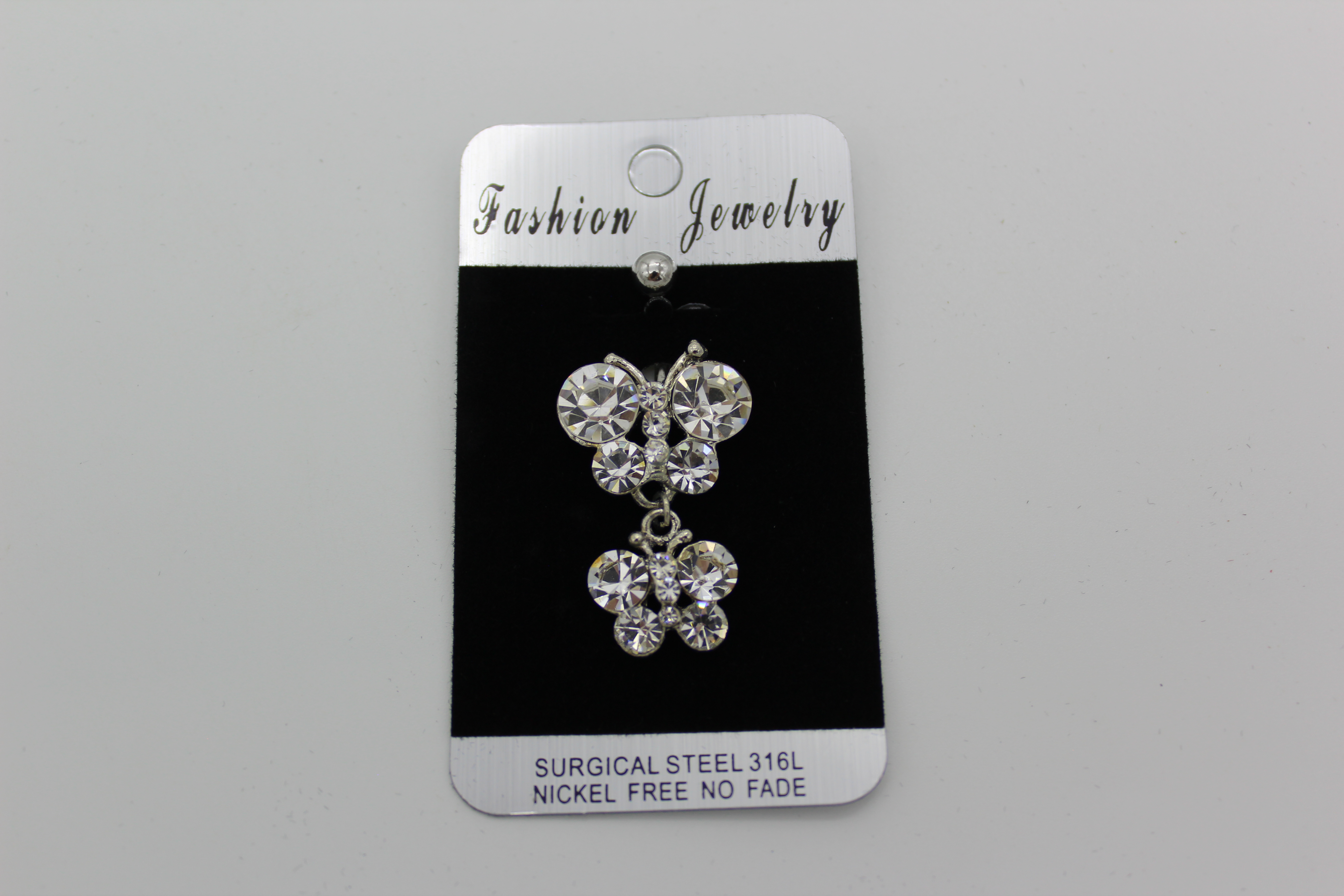 Пирсинг ажурная бабочка с белыми стразами 1 шт