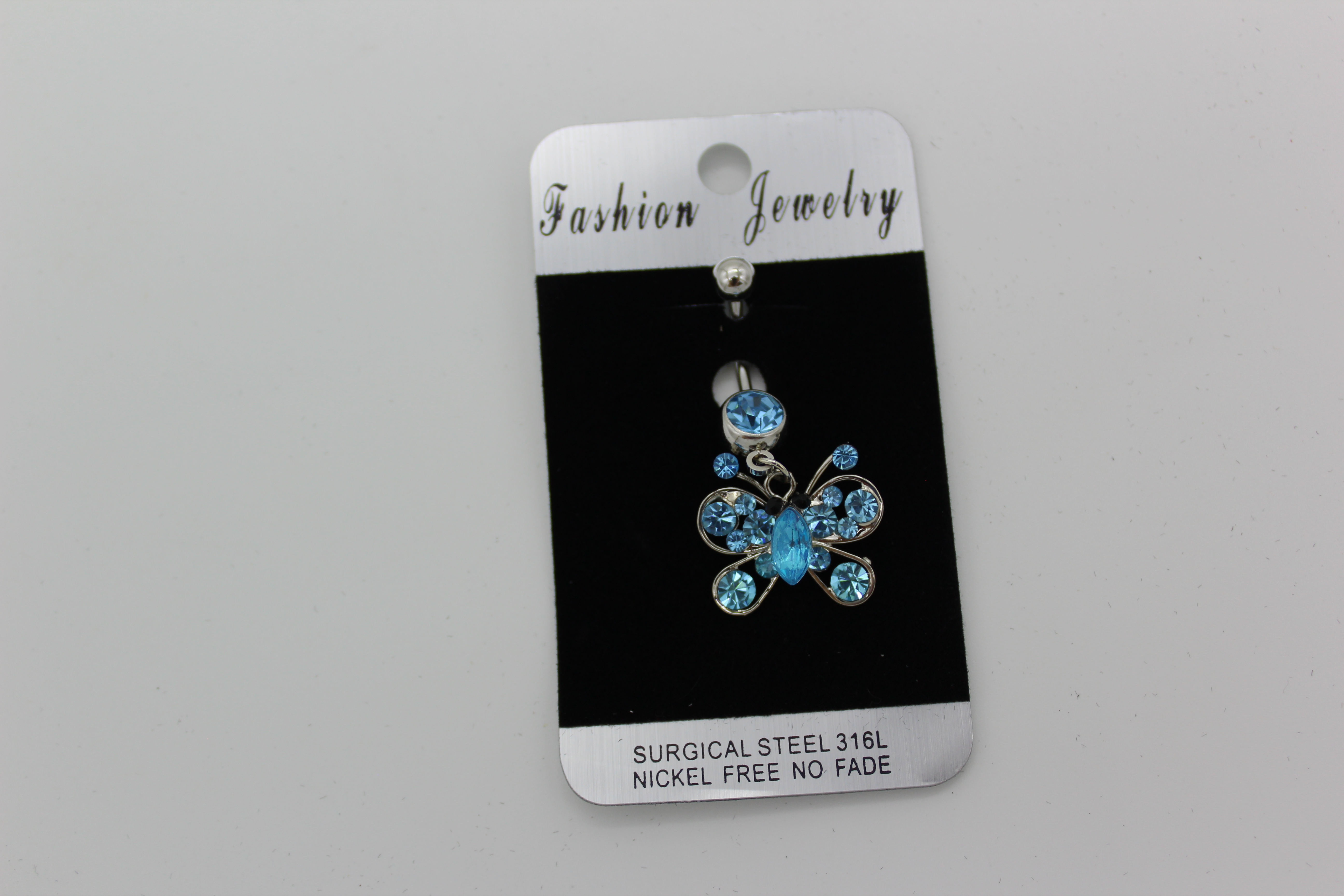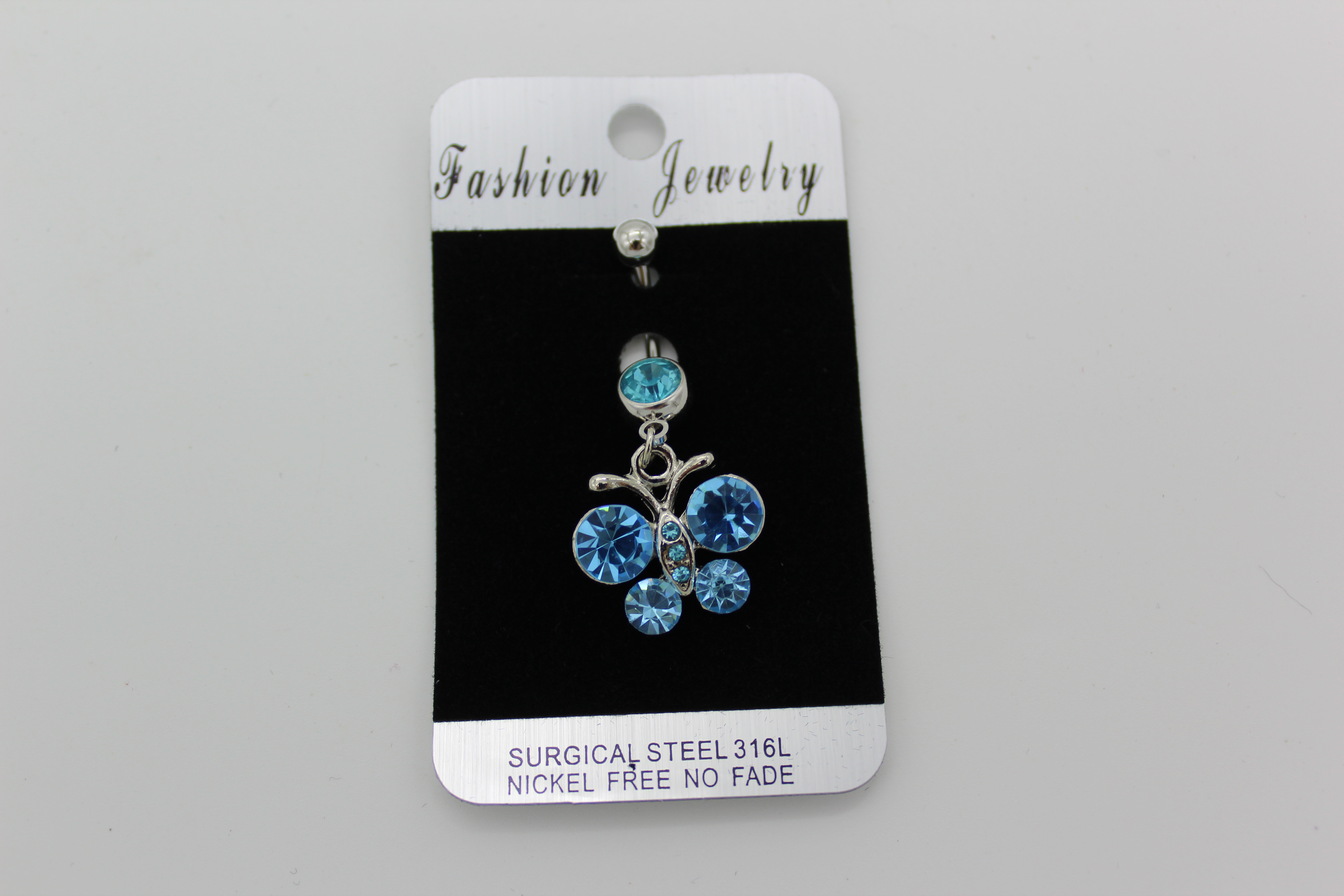 Пирсинг ажурная бабочка с голубыми стразами 1 шт