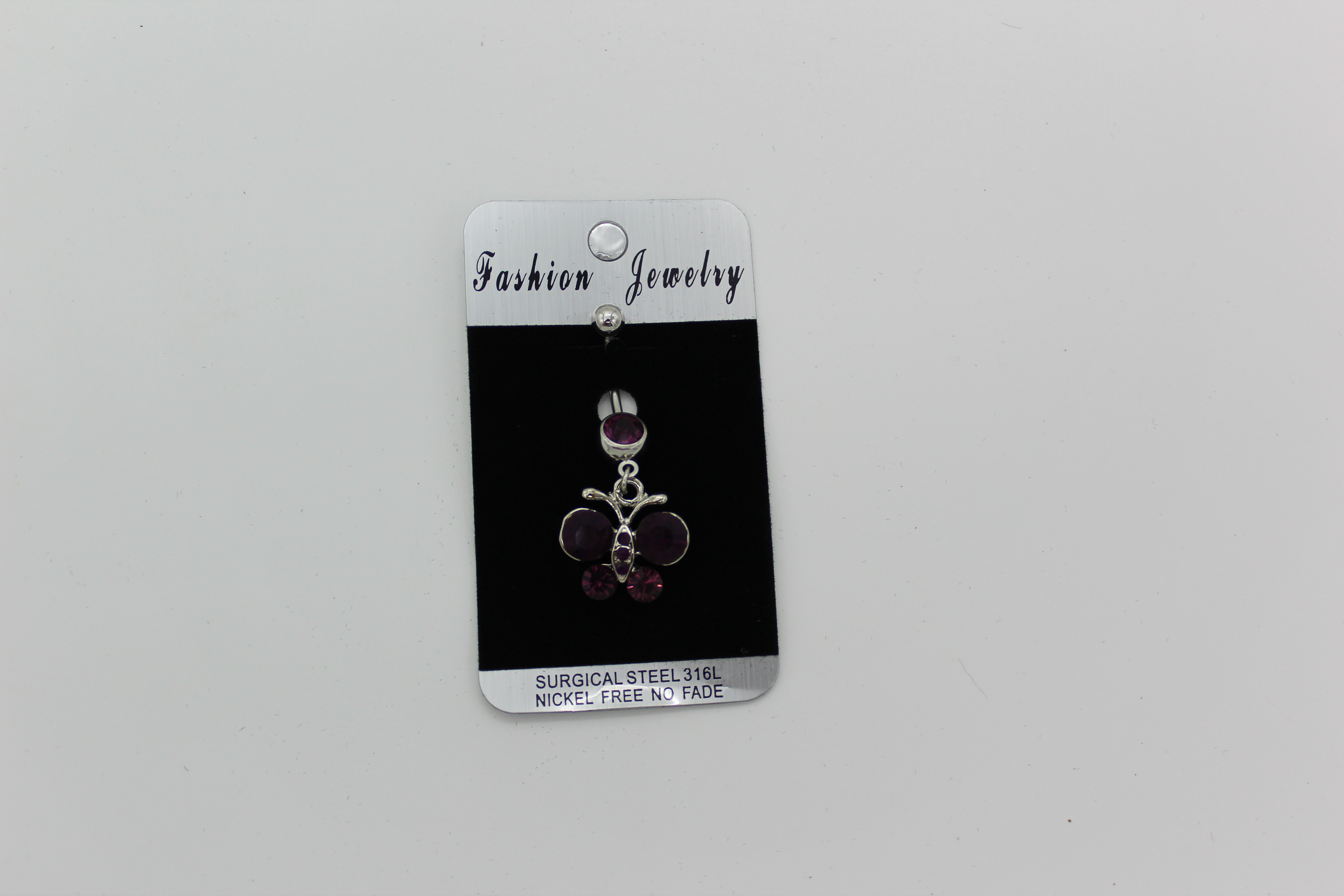 Пирсинг бабочка с фиолетовыми стразами 1 шт