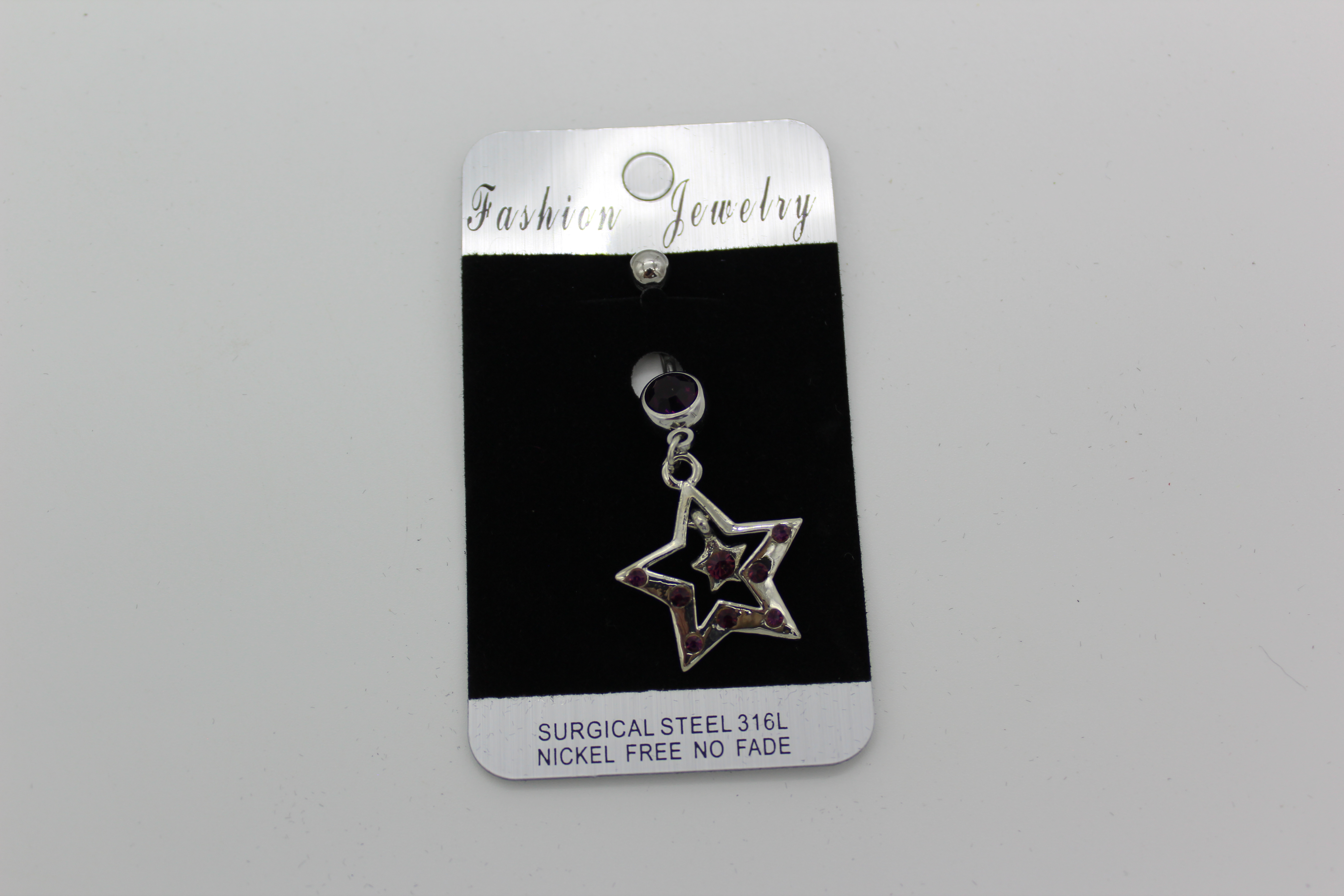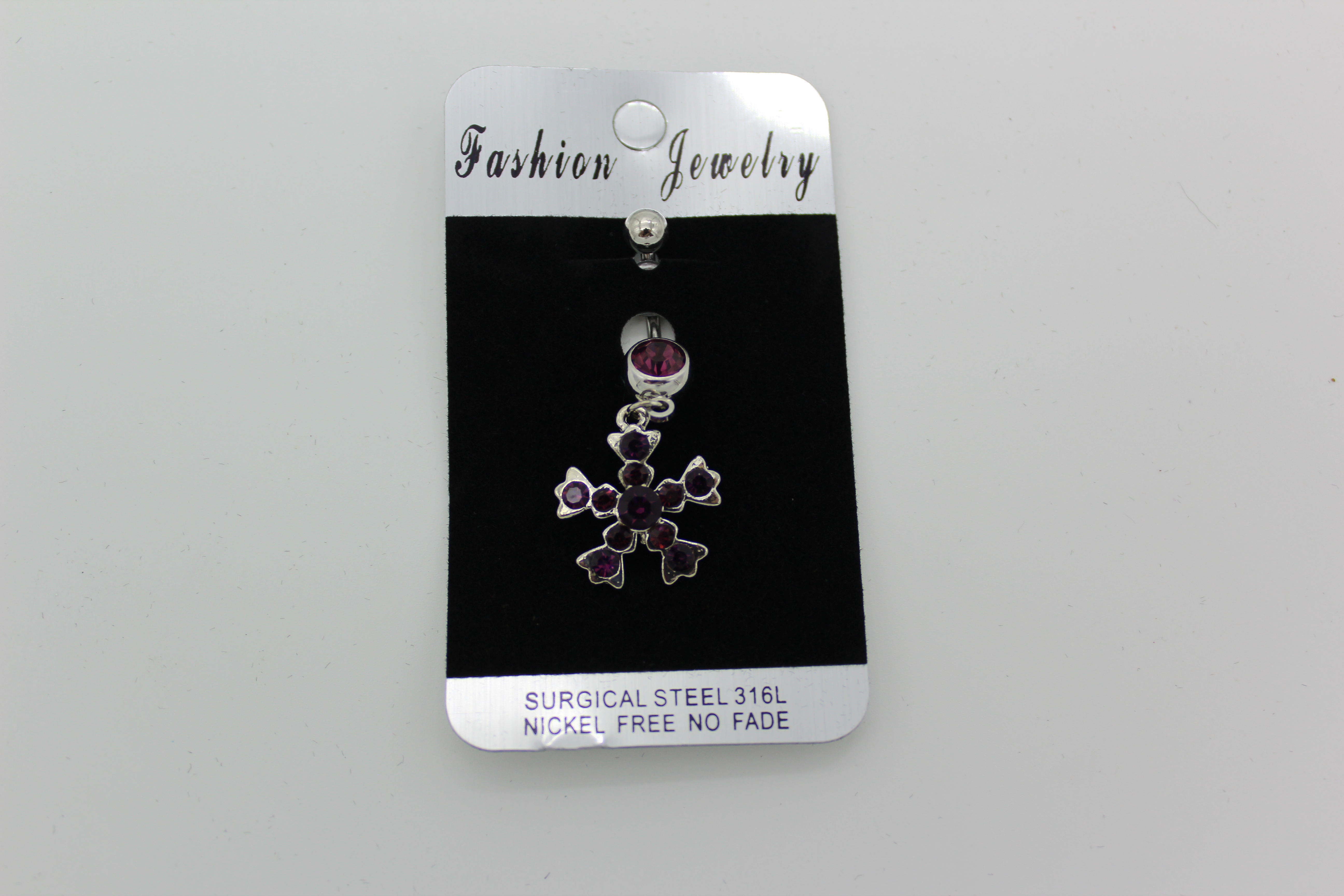 Пирсинг снежинка с фиолетовыми стразами 1 шт