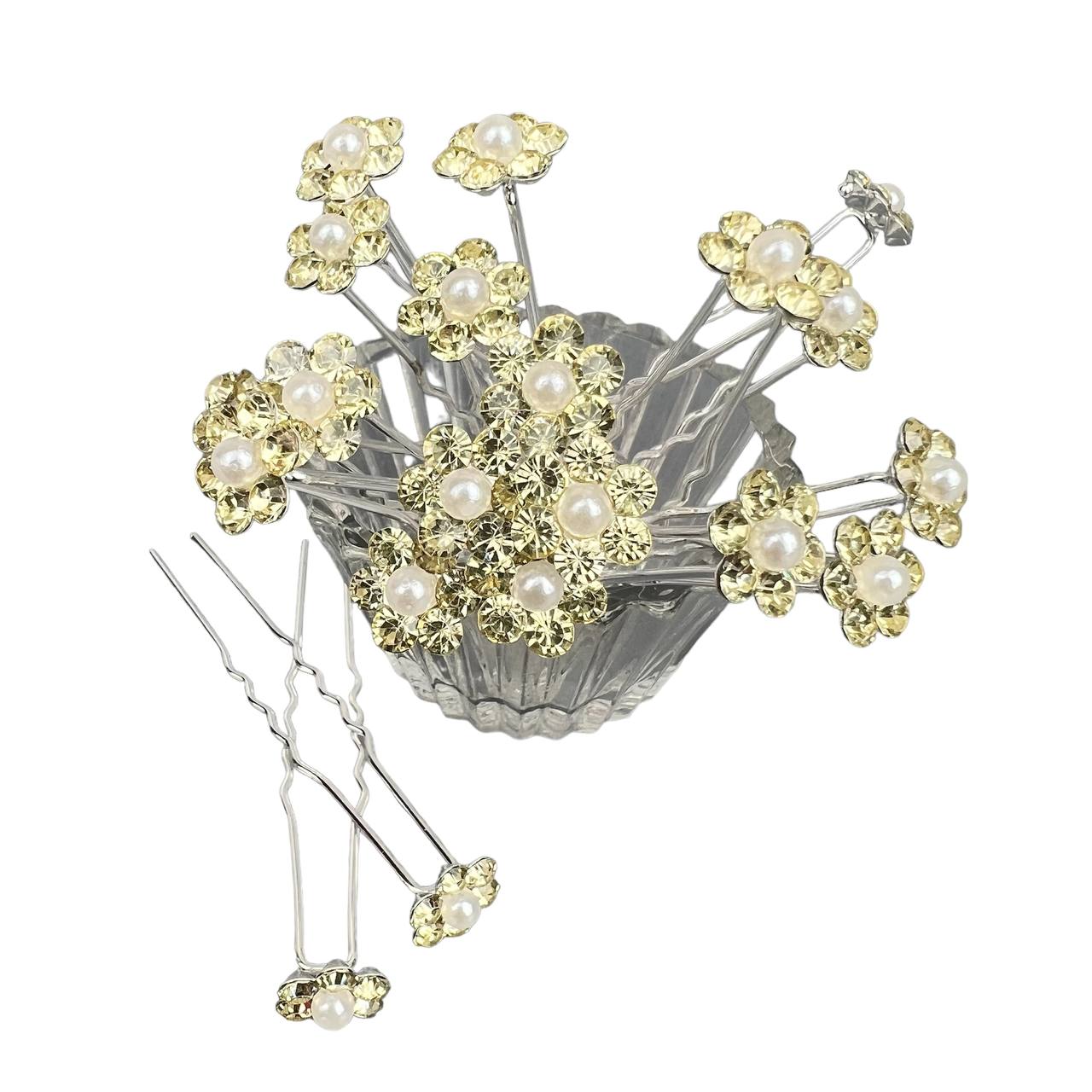 Шпильки для волос мелкий цветок из страз с жемчугом 20 шт айвори 43/1