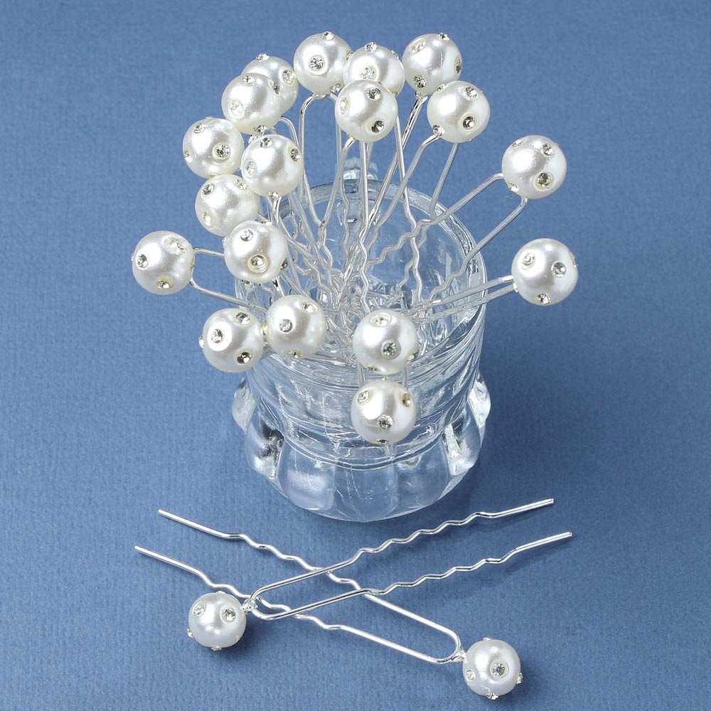 Шпильки для волос жемчуг со стразами 10 мм 20 шт белые 18/1