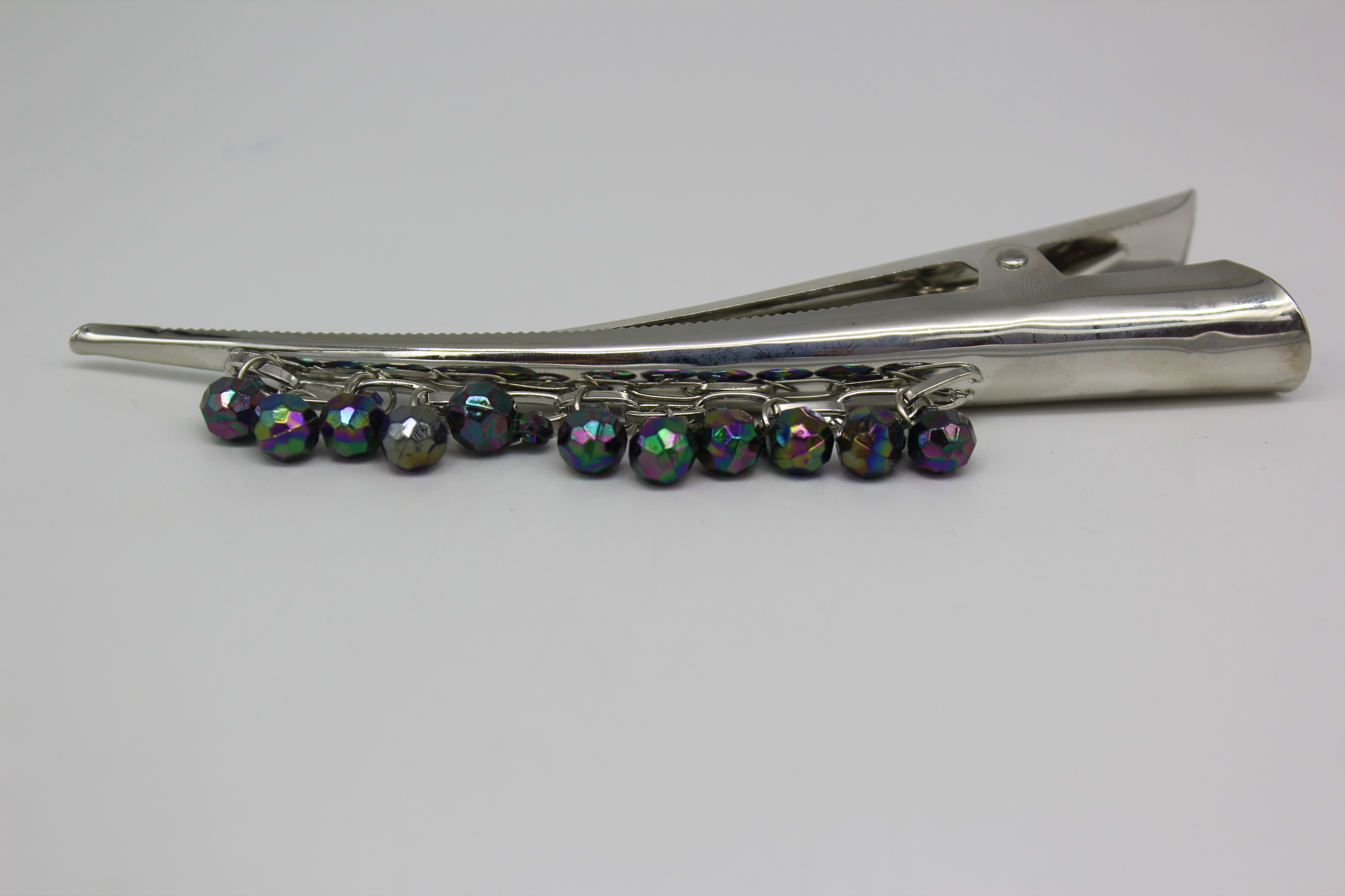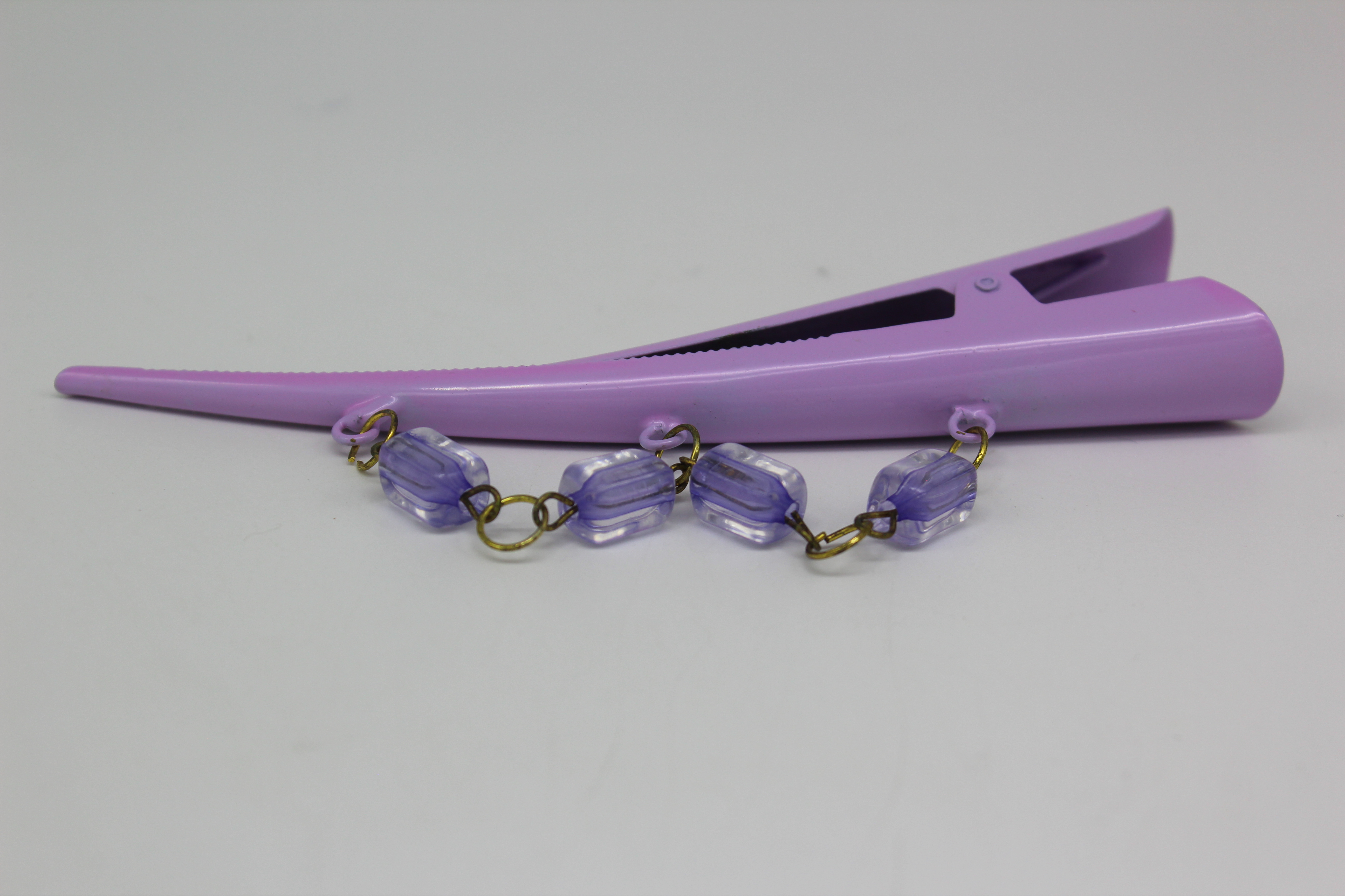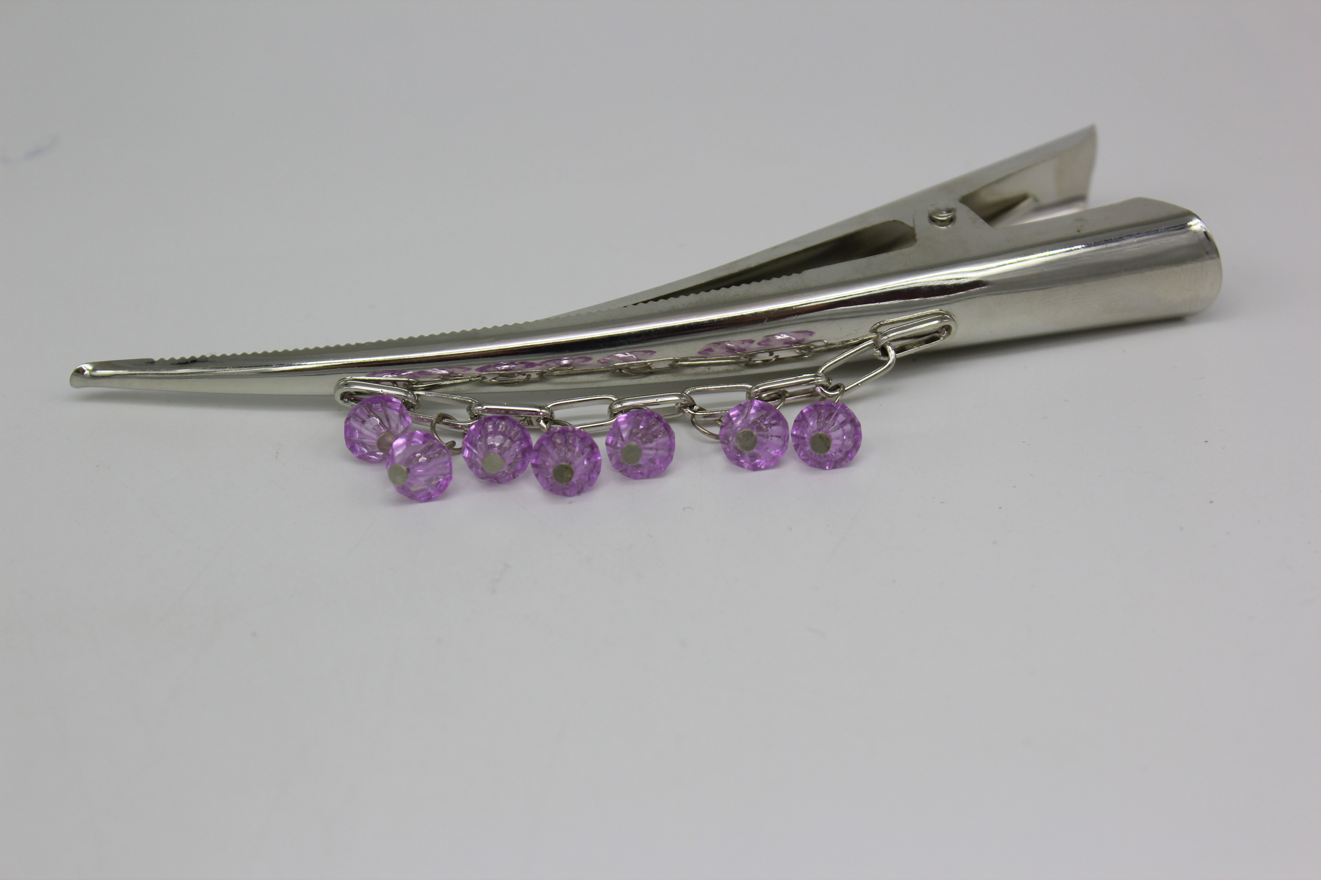 Уточка для волос 13 см серебро с сиреневыми бусинами