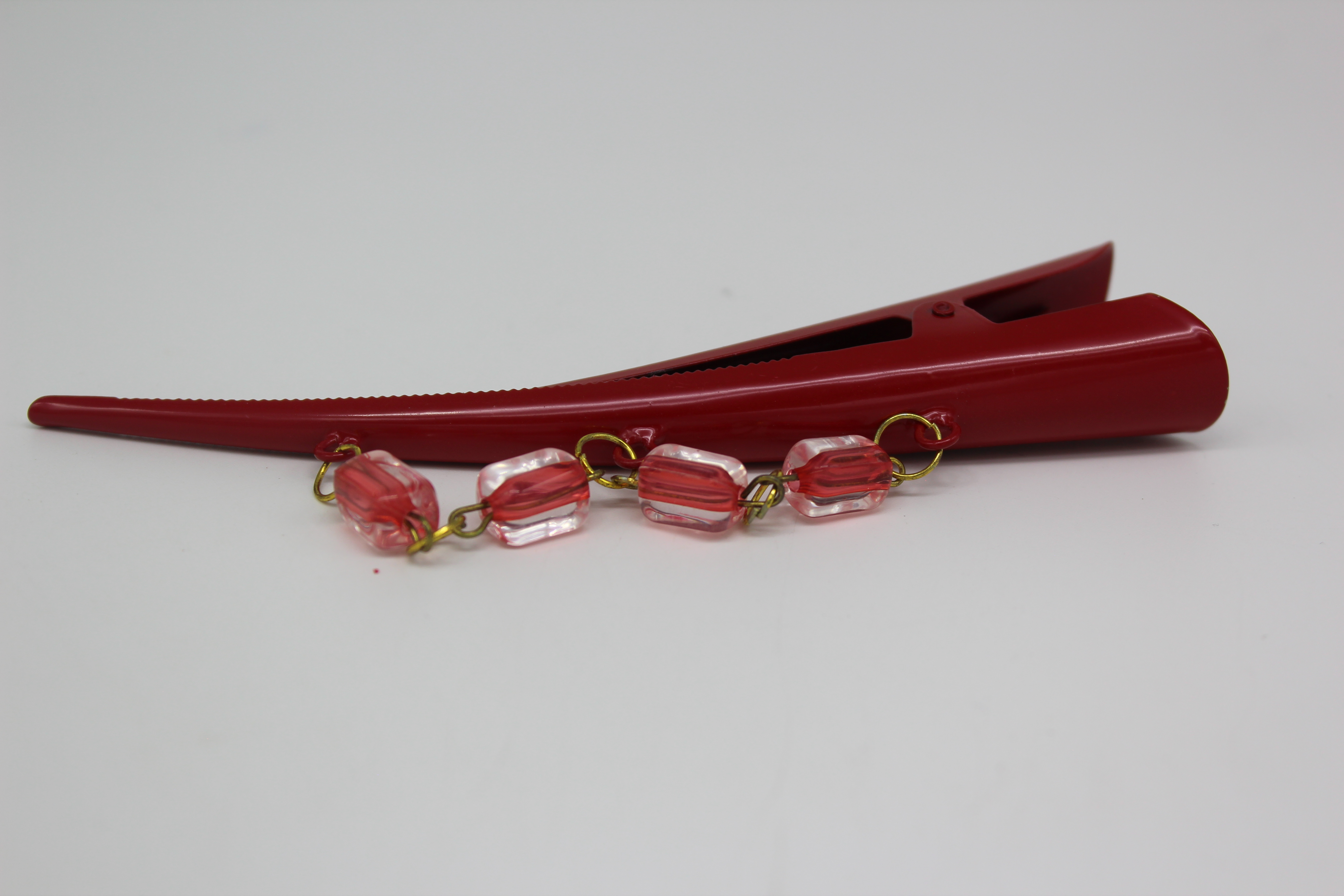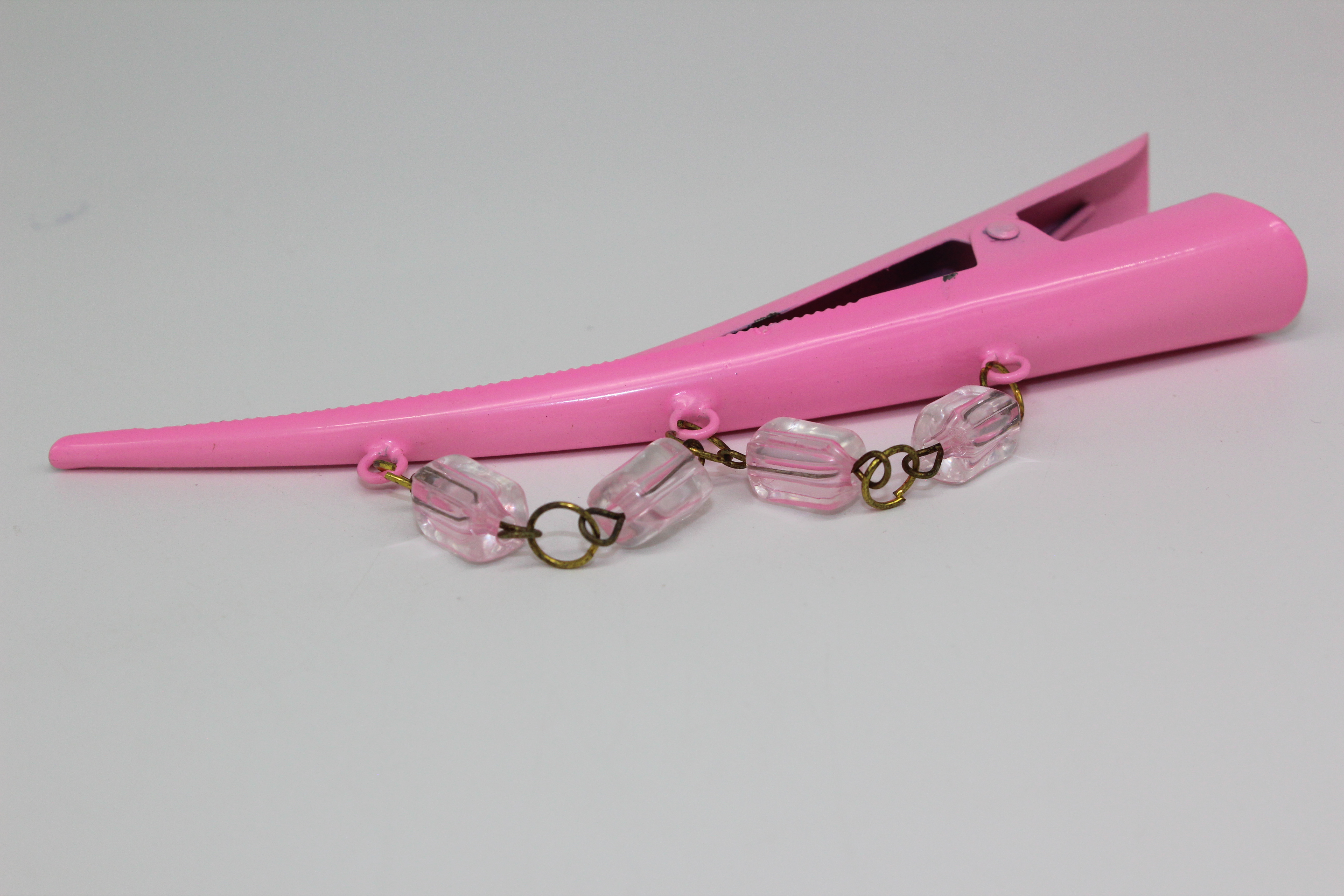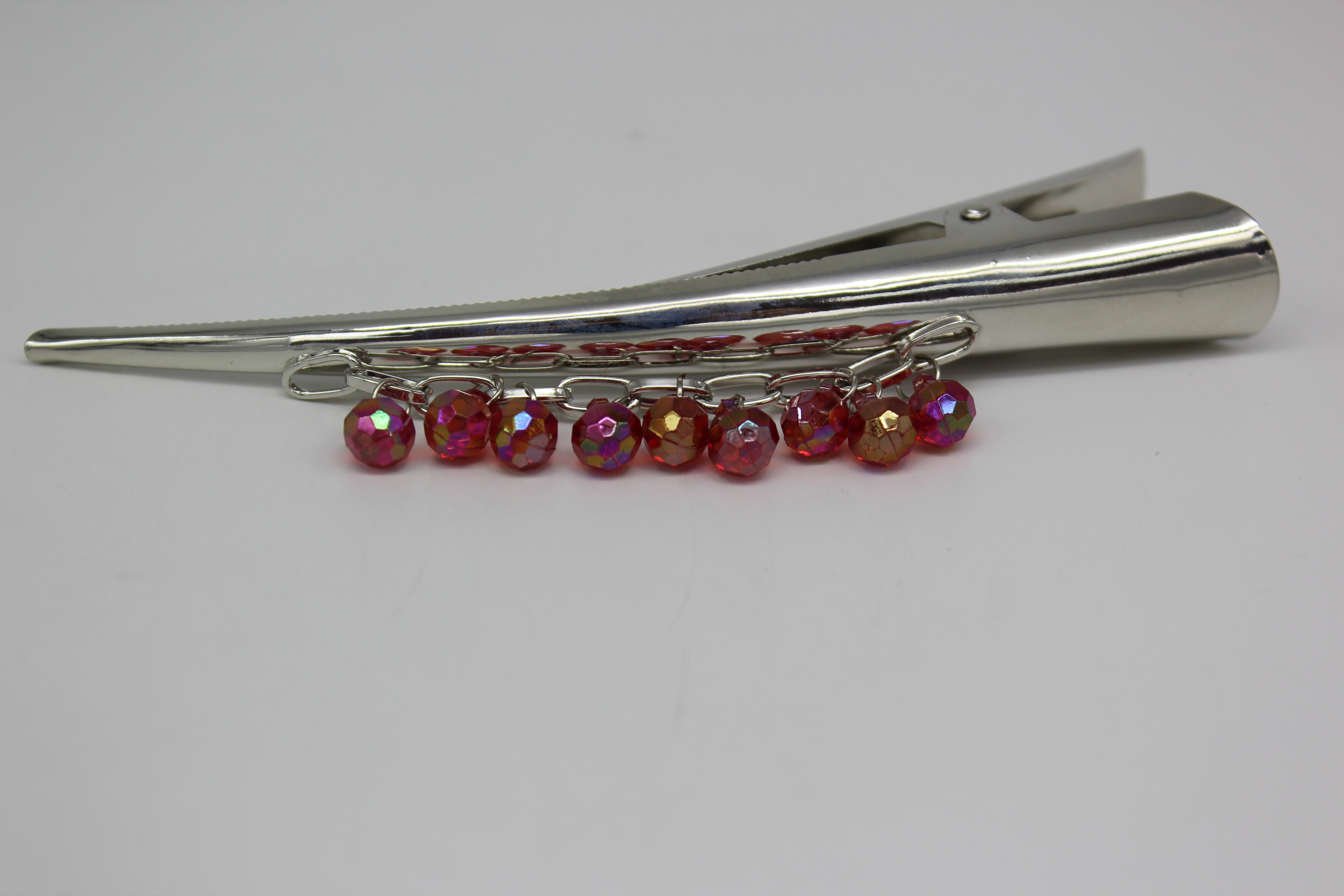 Уточка для волос 13 см серебро с сиреневыми бусинами