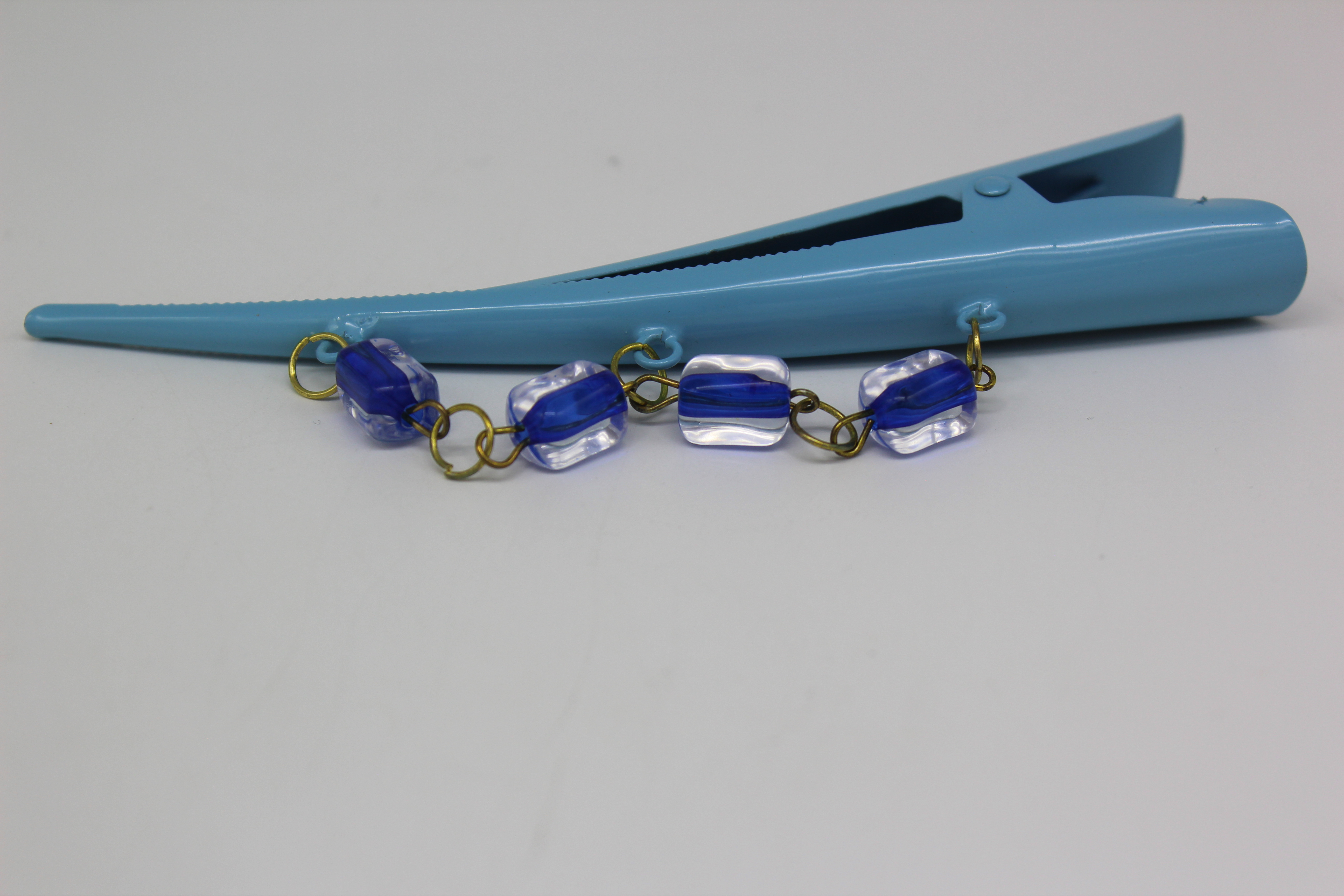 Уточка для волос серебро 13 см с бирюзовыми бусинами