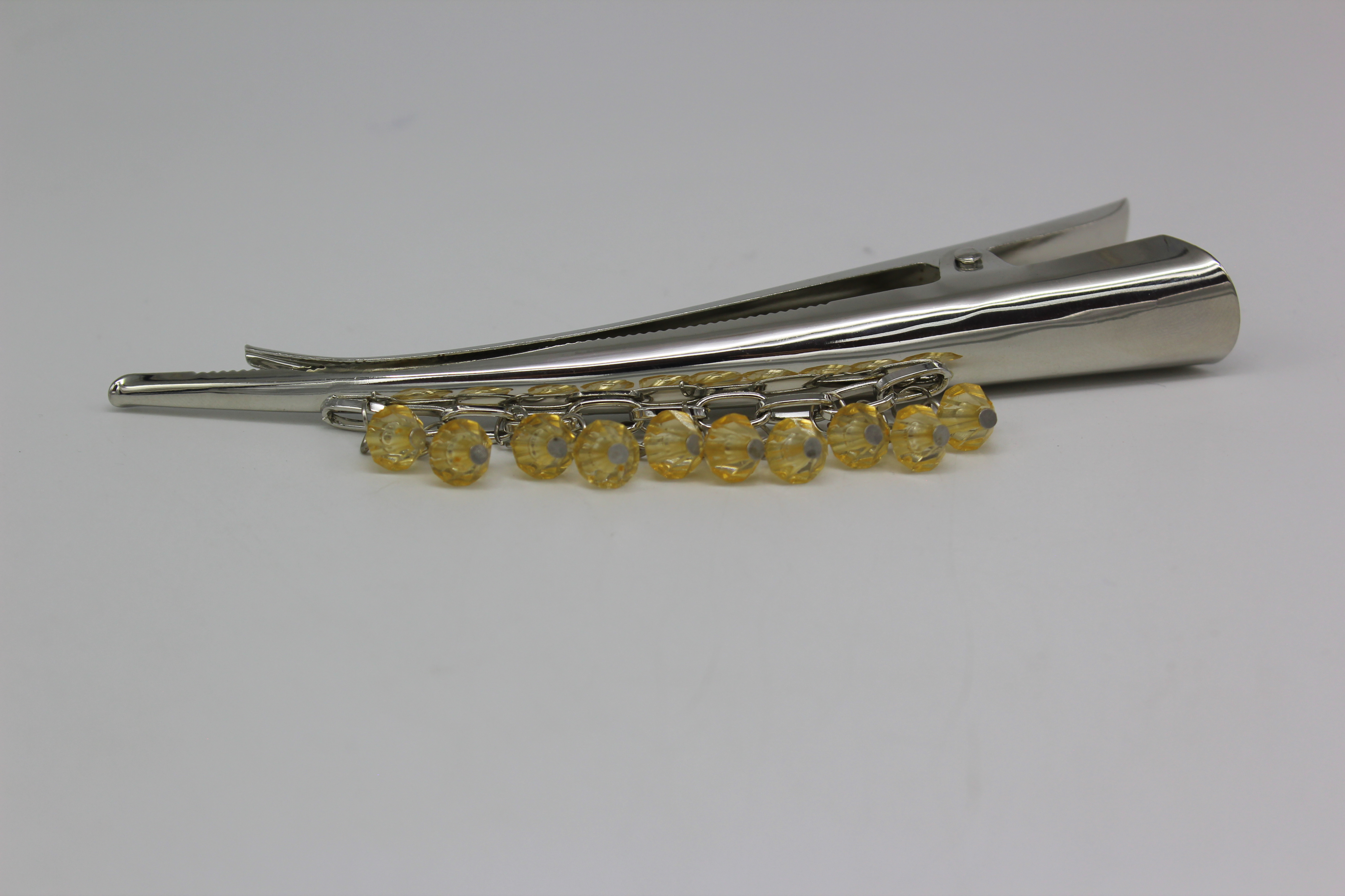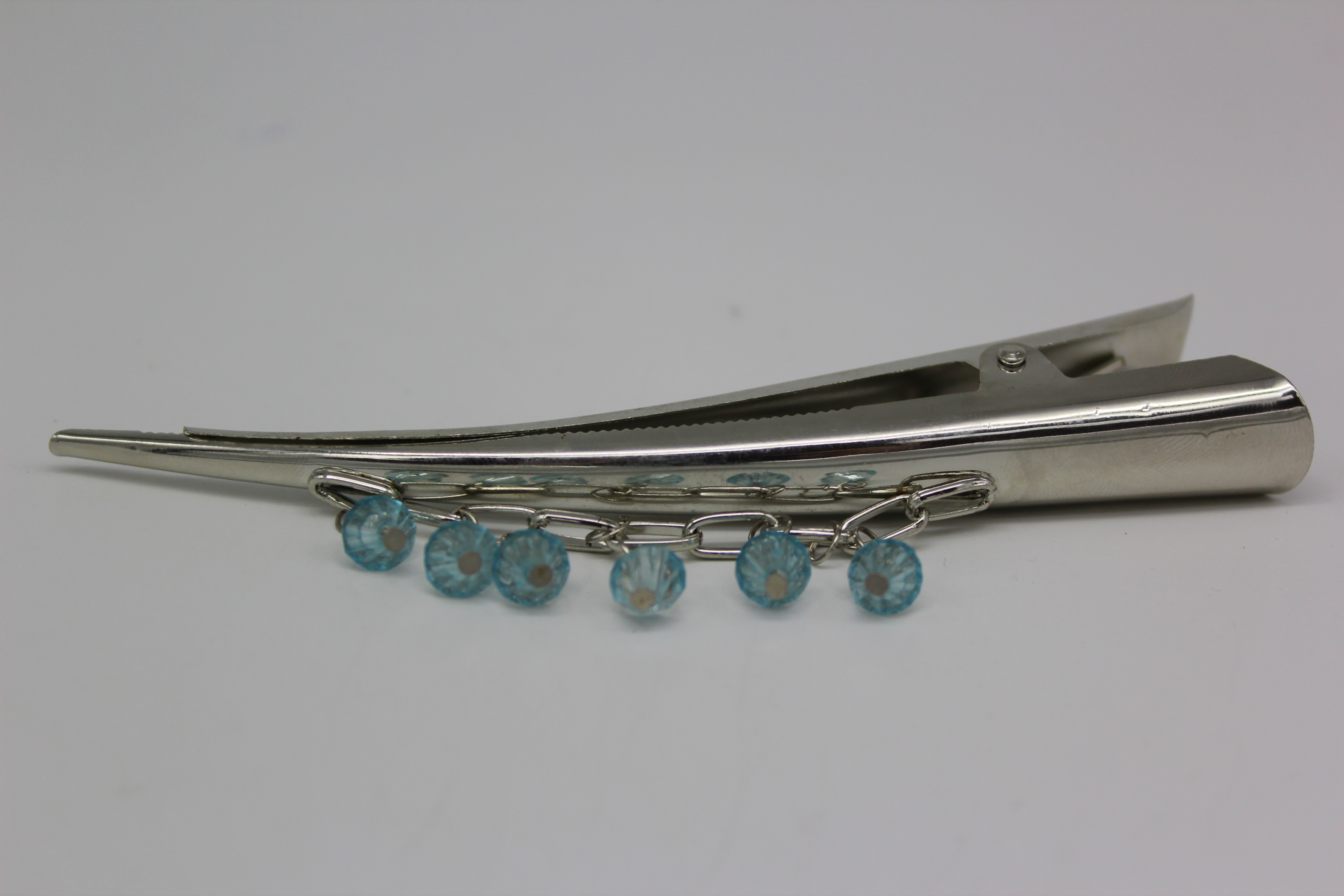 Уточка для волос 13 см серебро с салатовыми хрусталиками