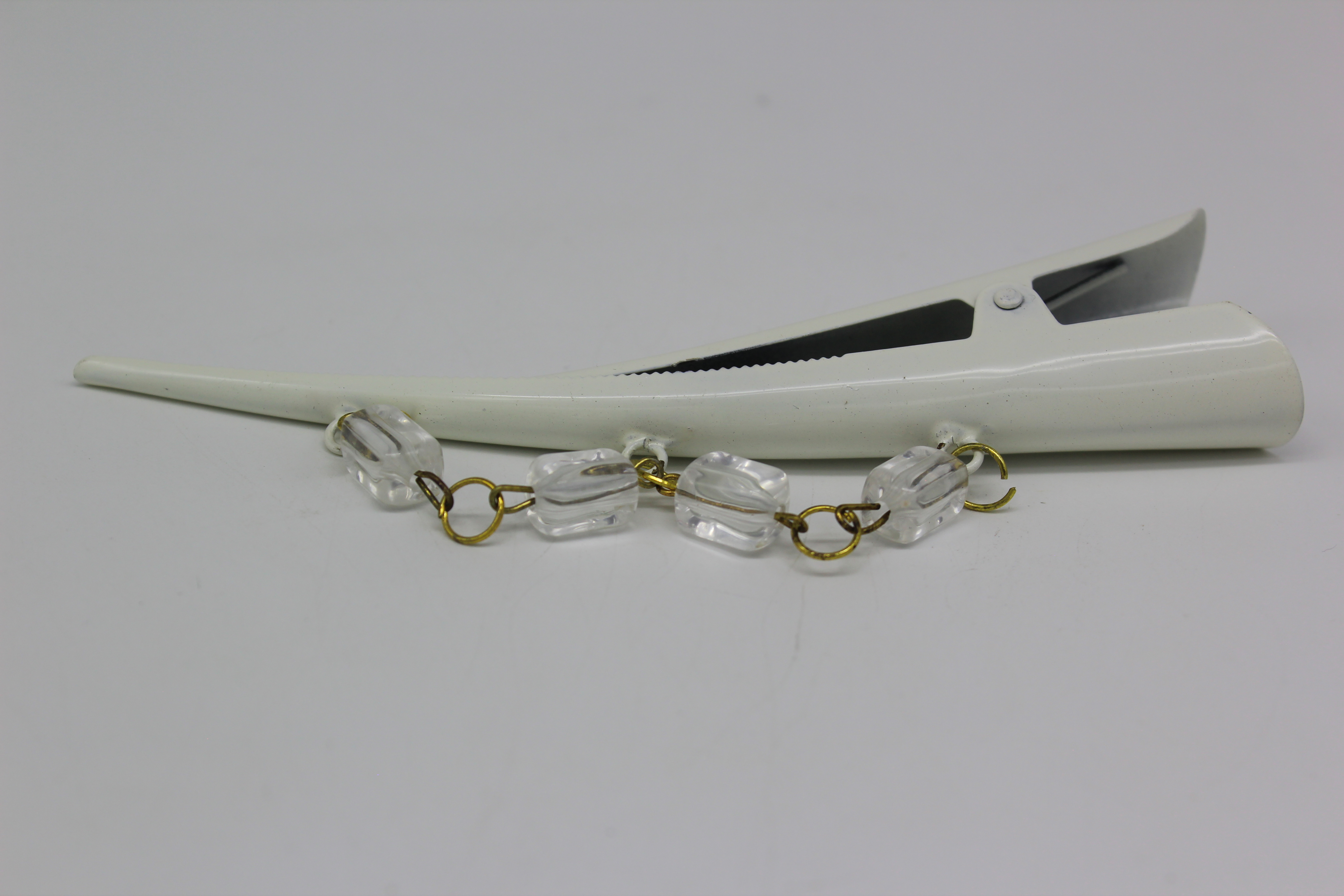 Уточка для волос серебро 13 см с бежевыми бусинами