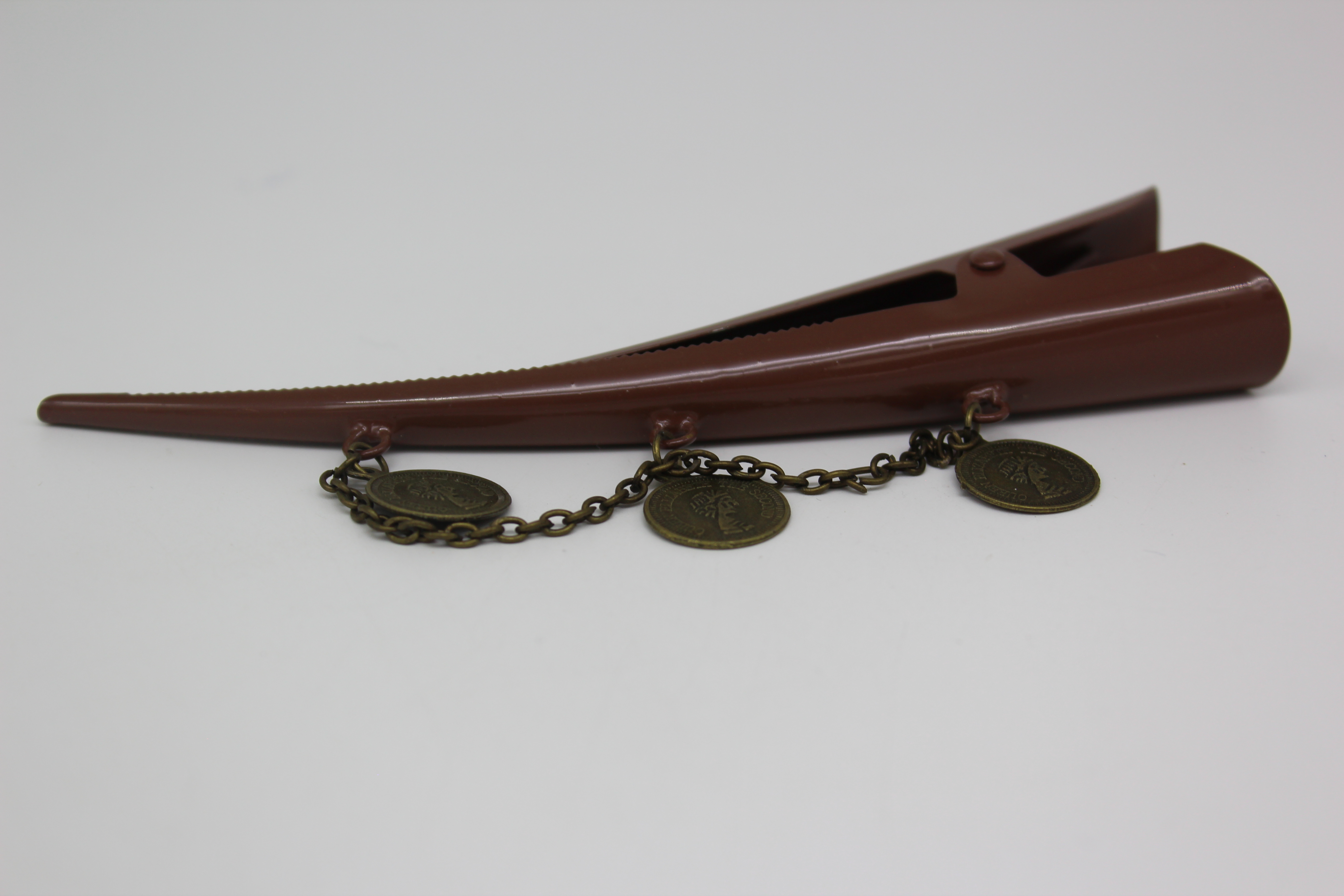 Уточка для волос серебро 13 см с коричневыми бусинами