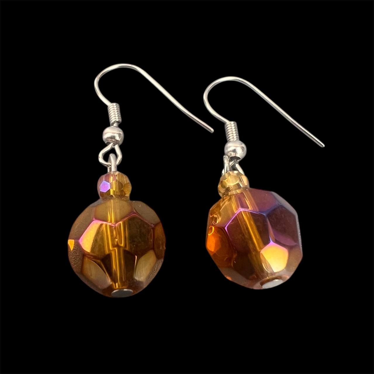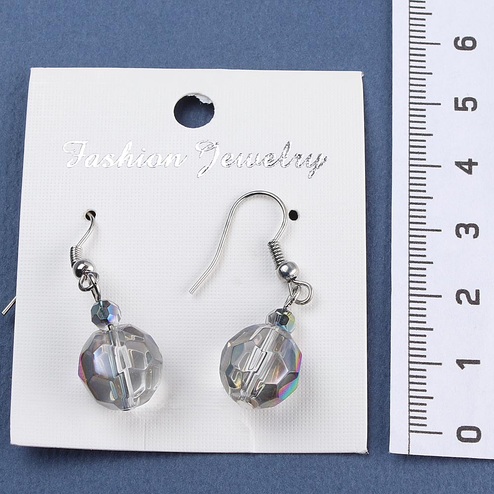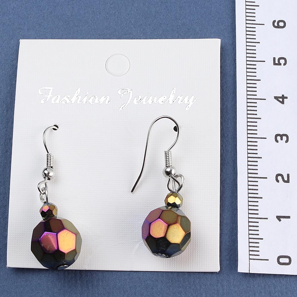 Серьги стеклянный шарик 1 пара фиолетово-бензиновый