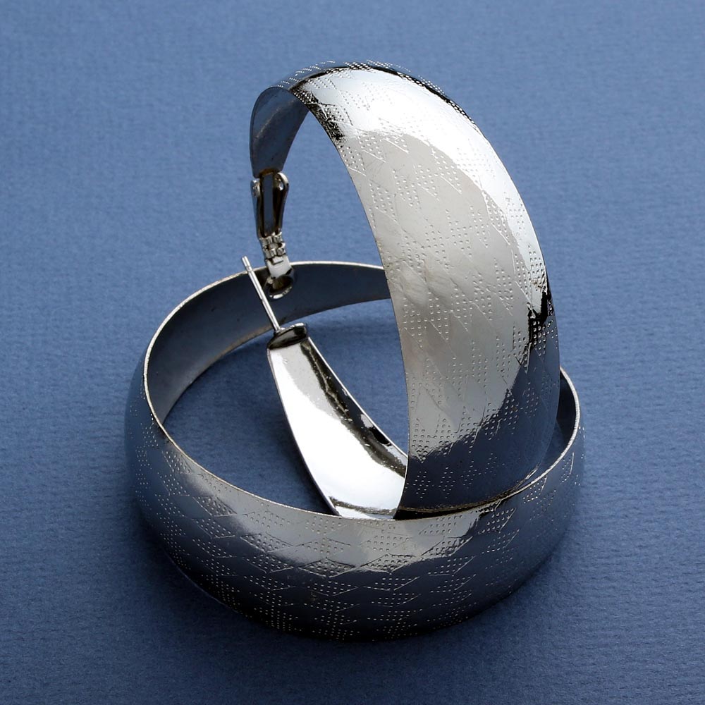 Серьги-кольца широкие под серебро с рисунком ромба №2