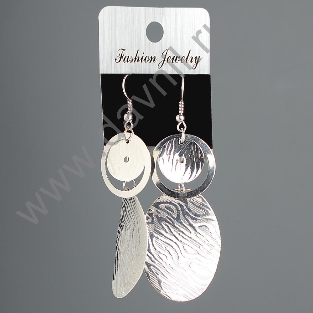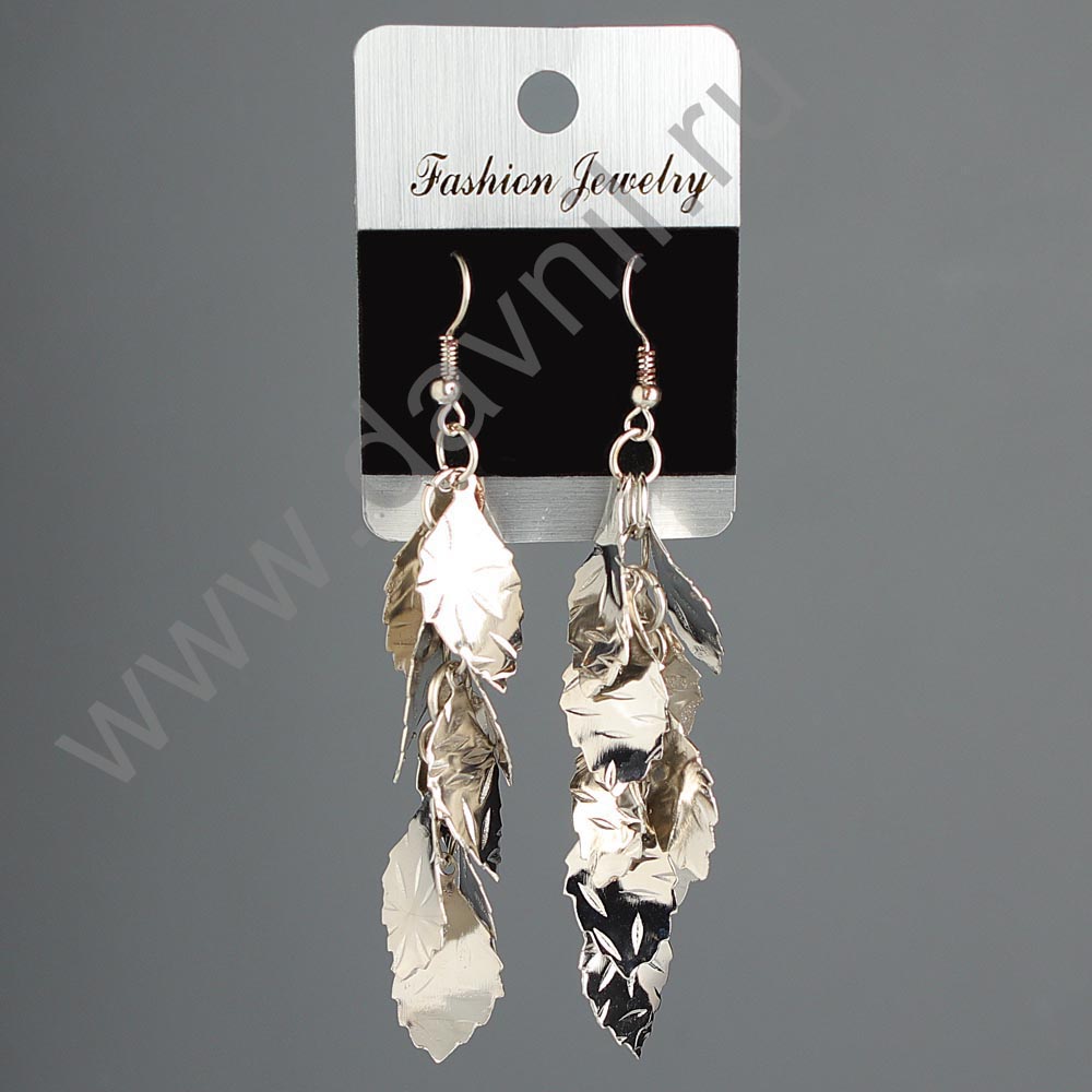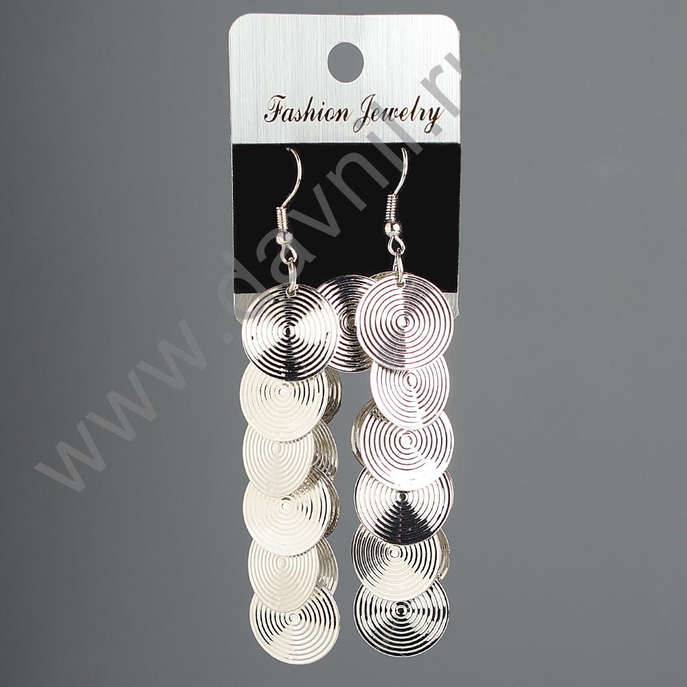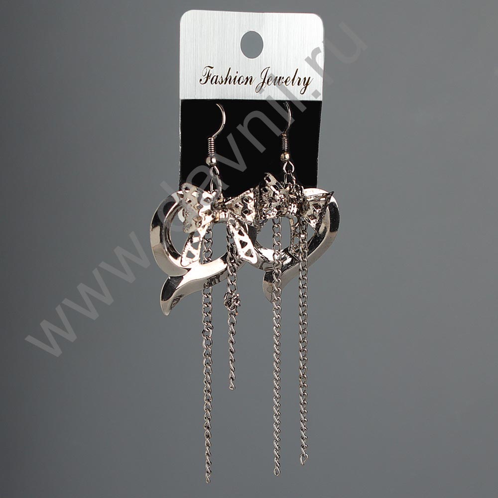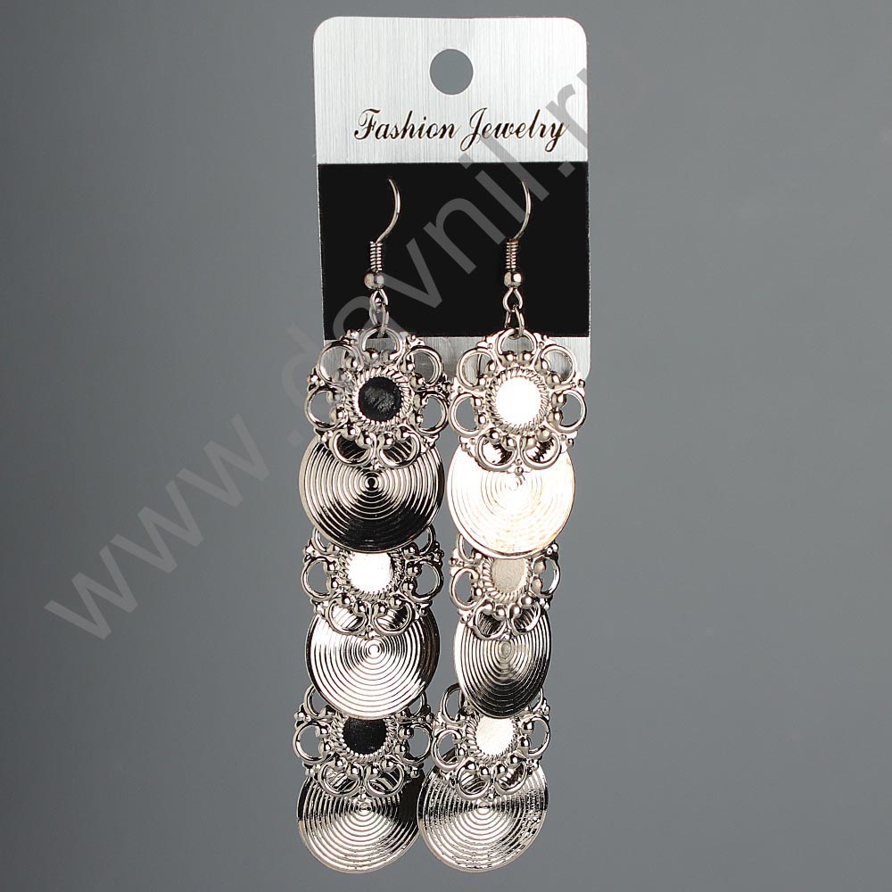 Серьги ромб ажурный под серебро 7 см с цепочкой