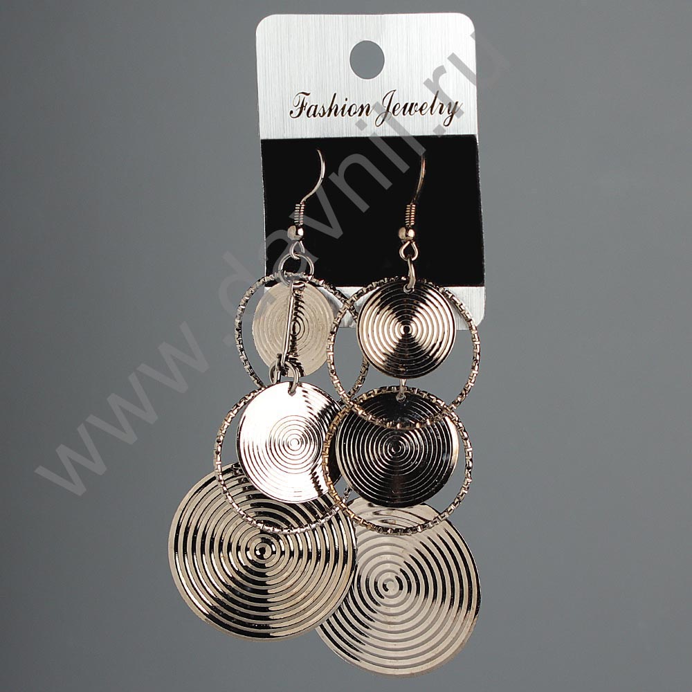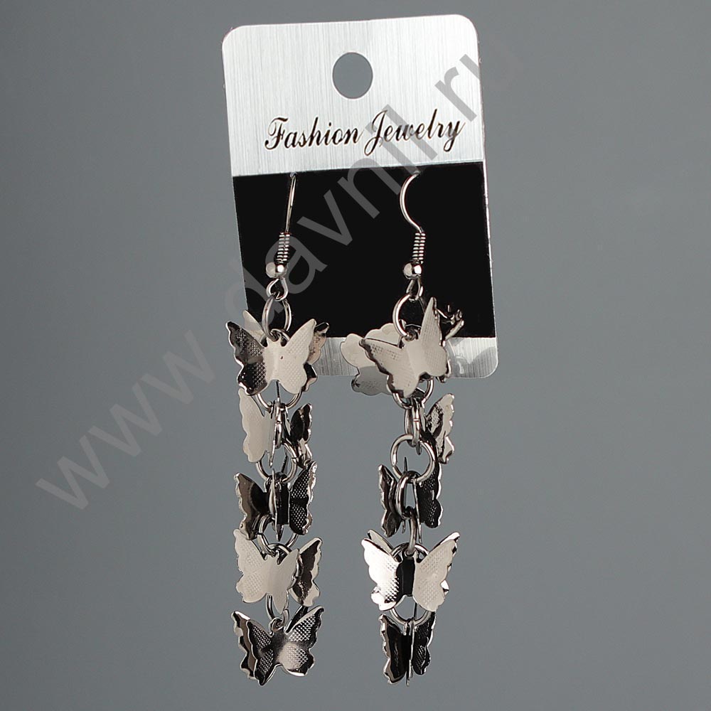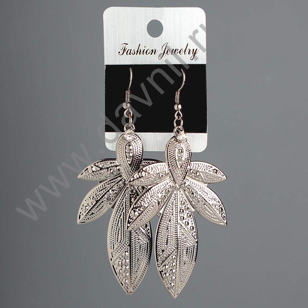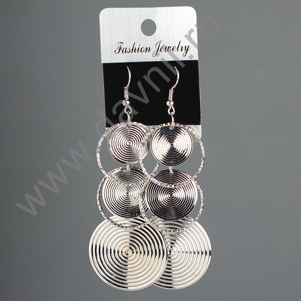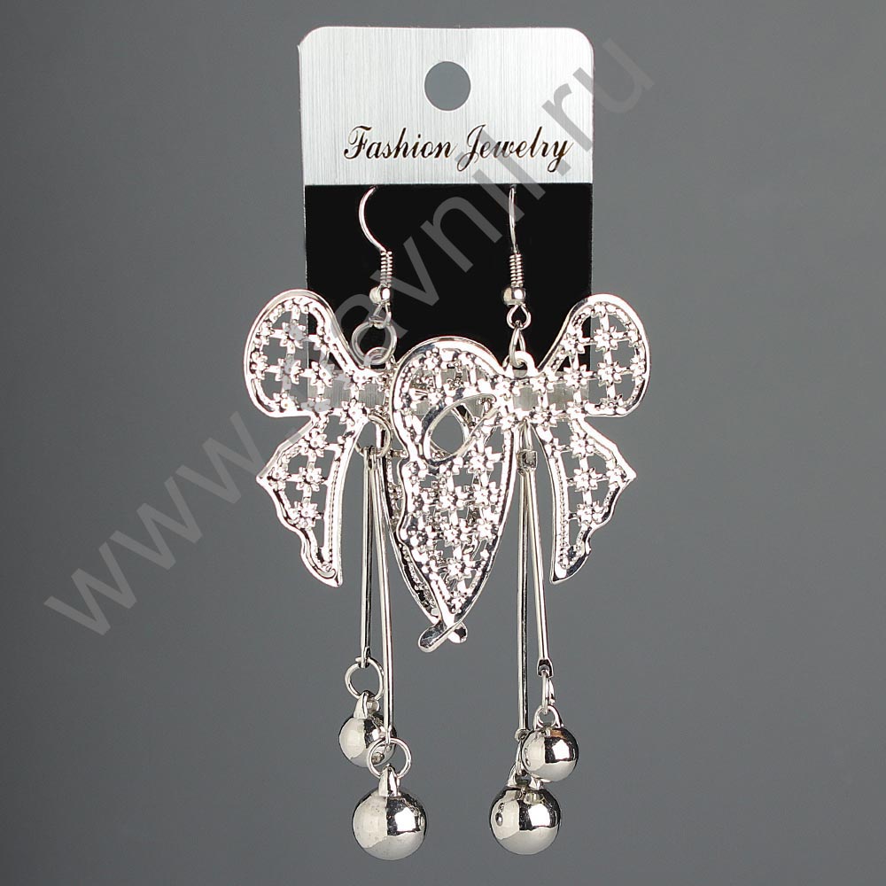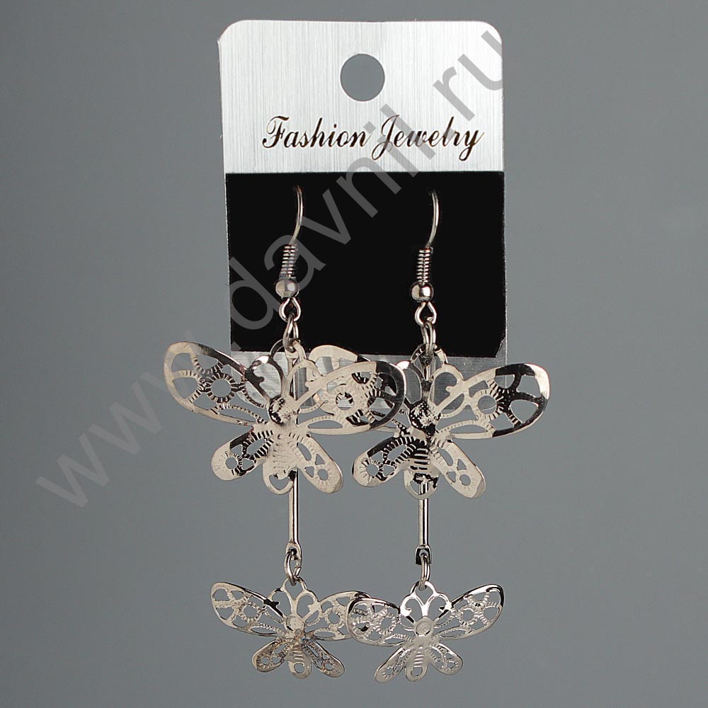 Серьги ромб ажурный под серебро 7 см с цепочкой