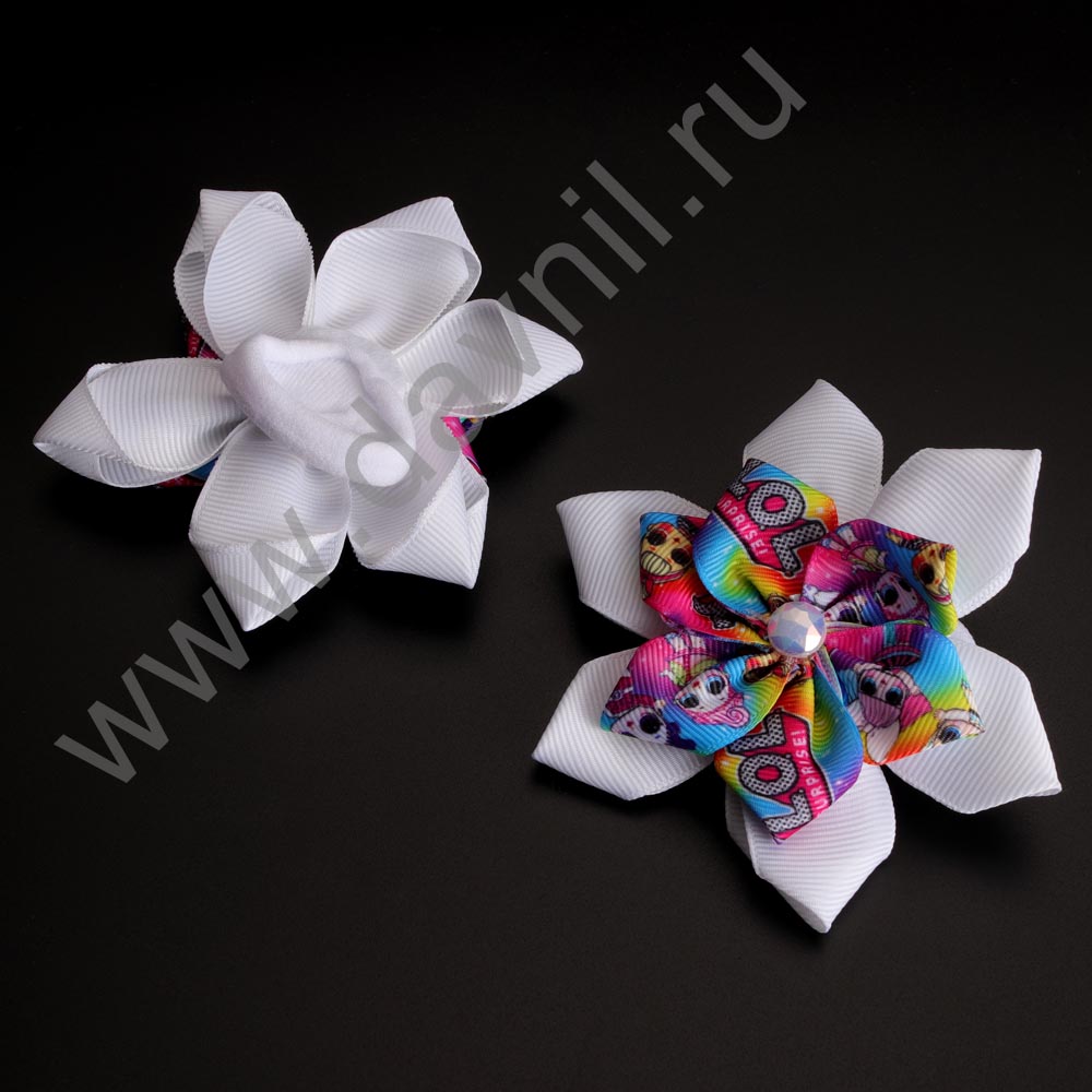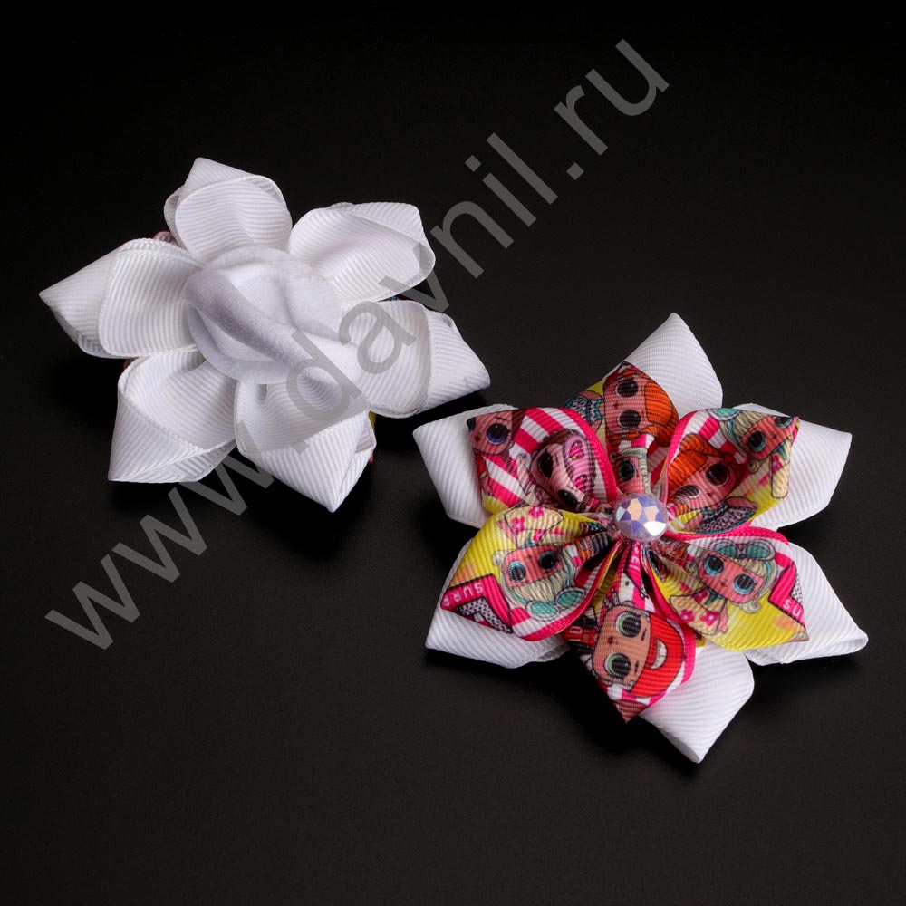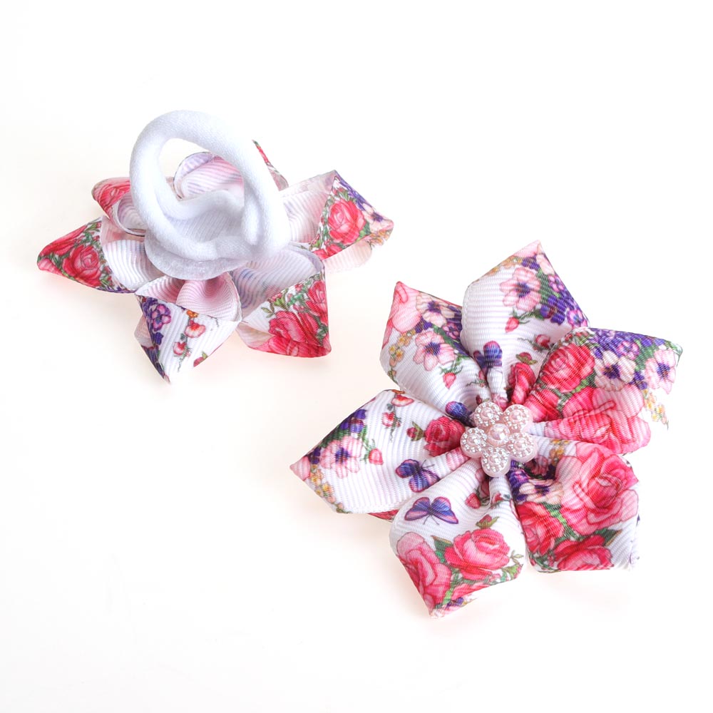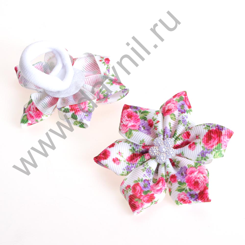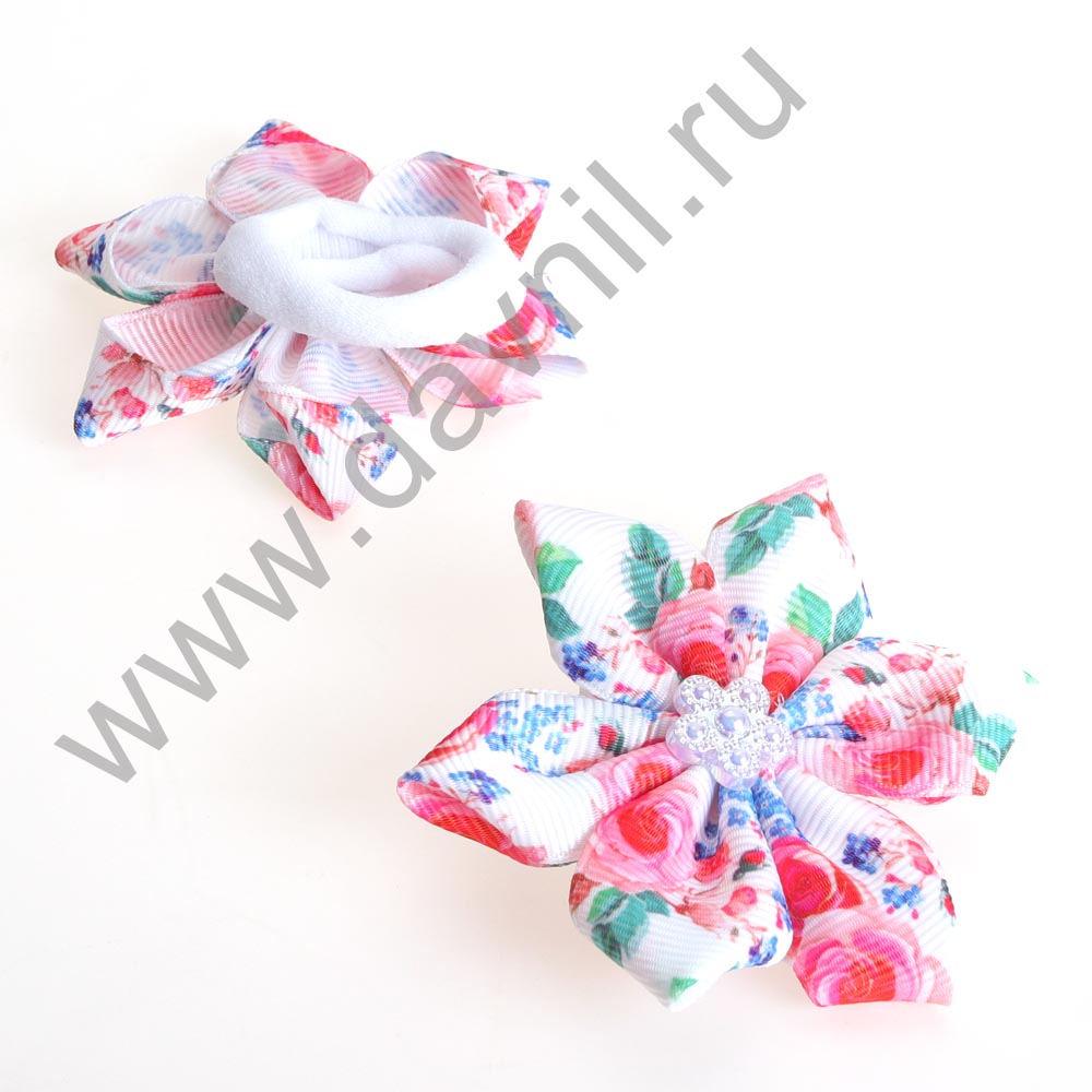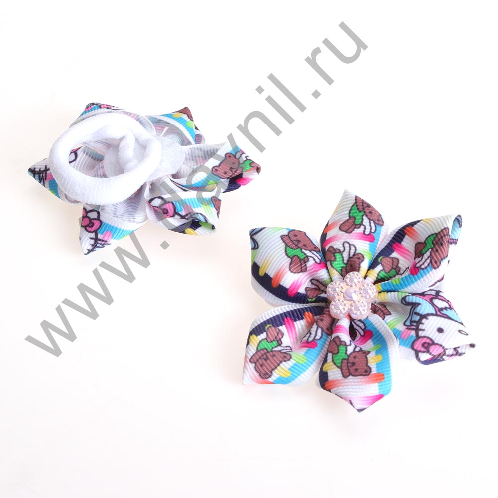 Бант на резинке с цветком 7*7 см 2 шт.
