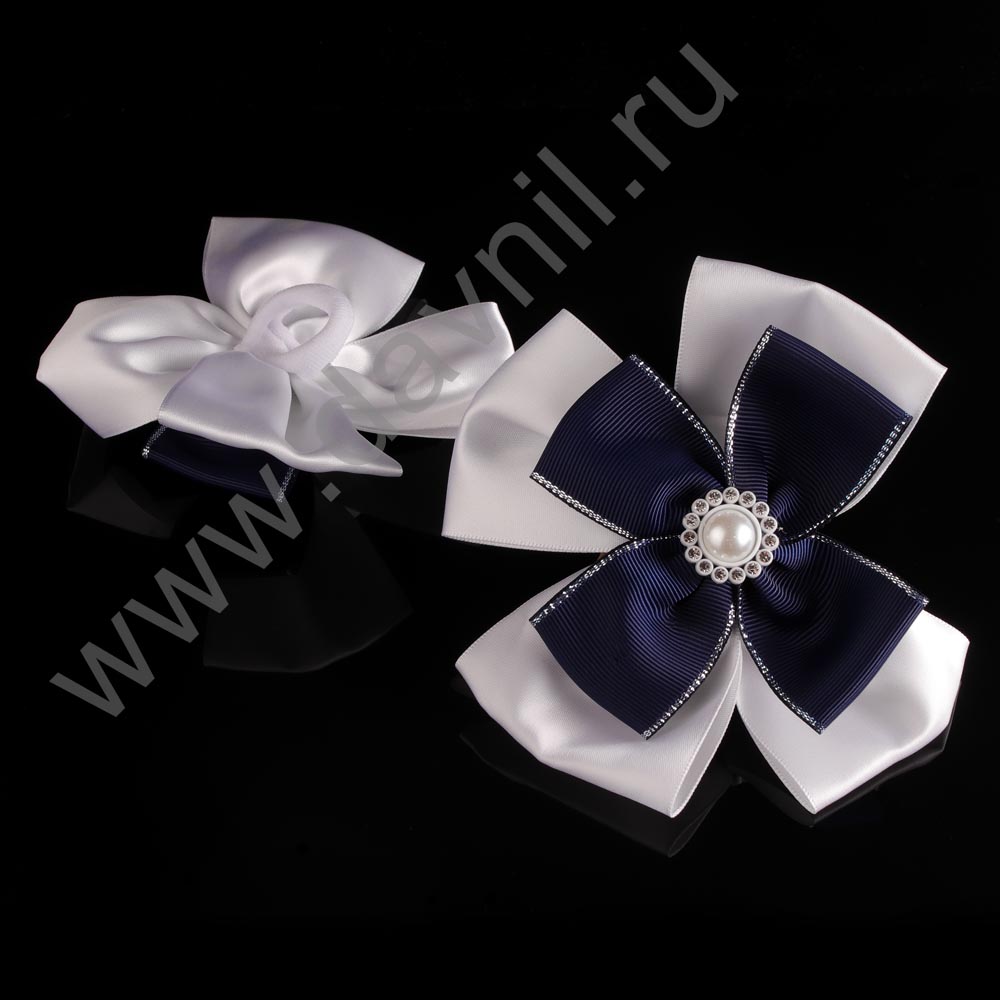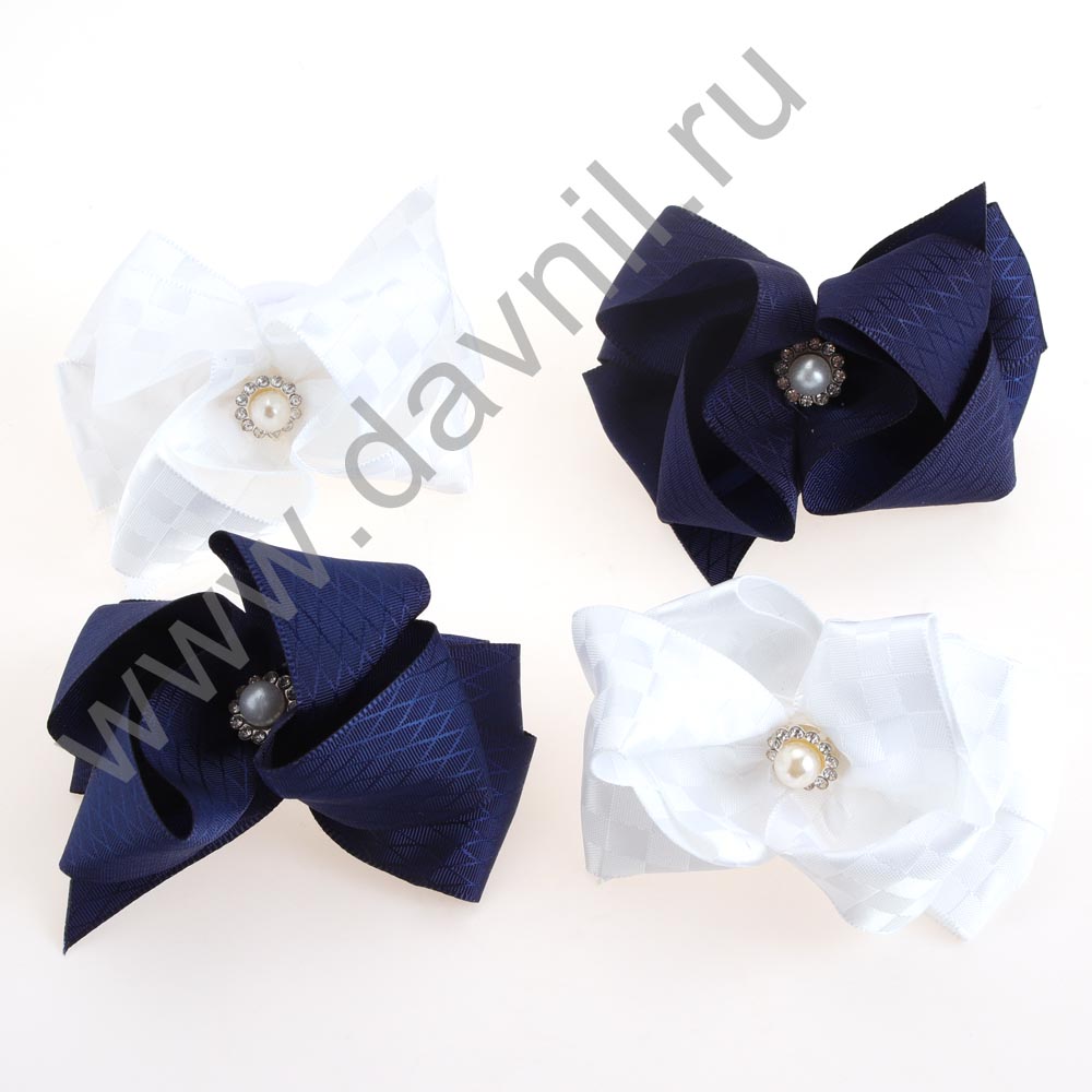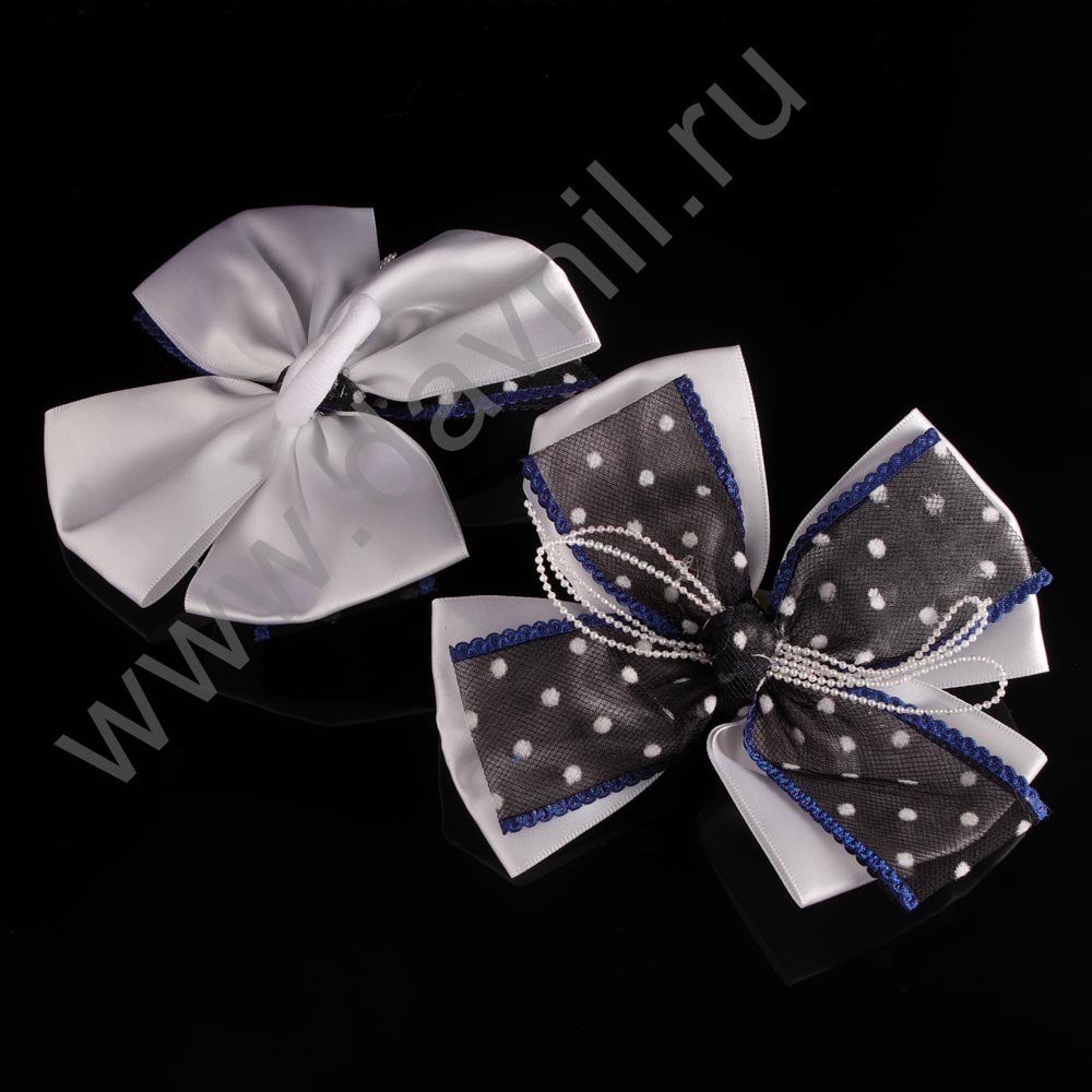 Бант на резинке с бусинами d=15 см 2 шт. белый с синим