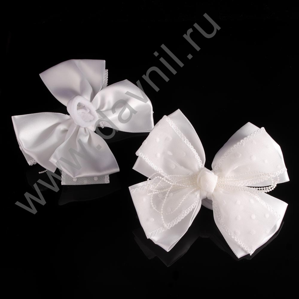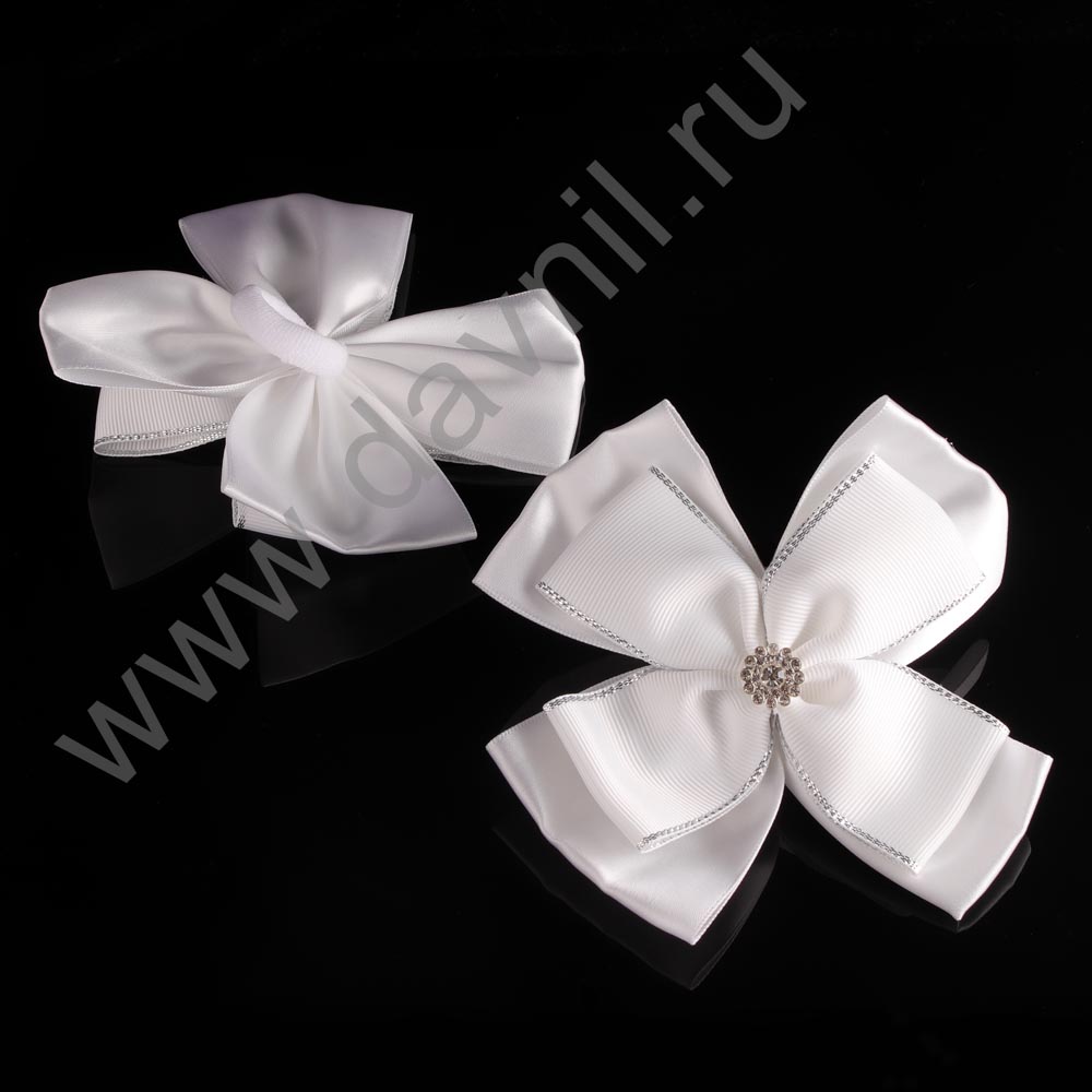 Бант на резинке d=8 см белый 2 шт.