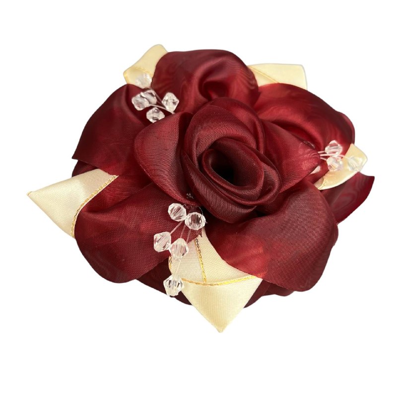 Бант на резинке "Надежда" 15 см бордовый с хрусталиками 1 шт