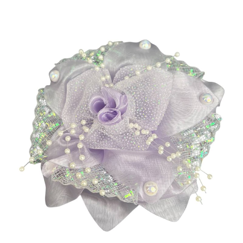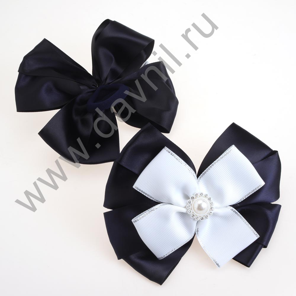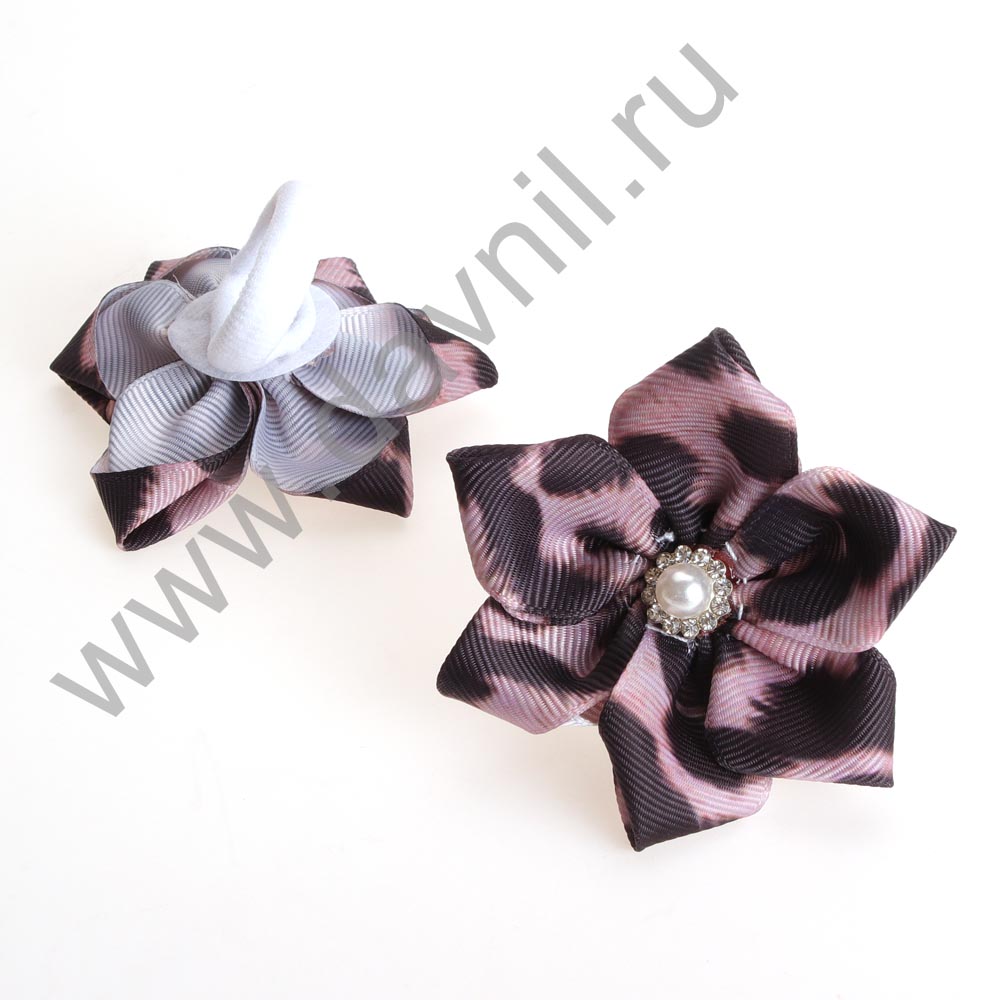 Бант на резинке с жемчугом 7*7 см серый с черным 2 шт.