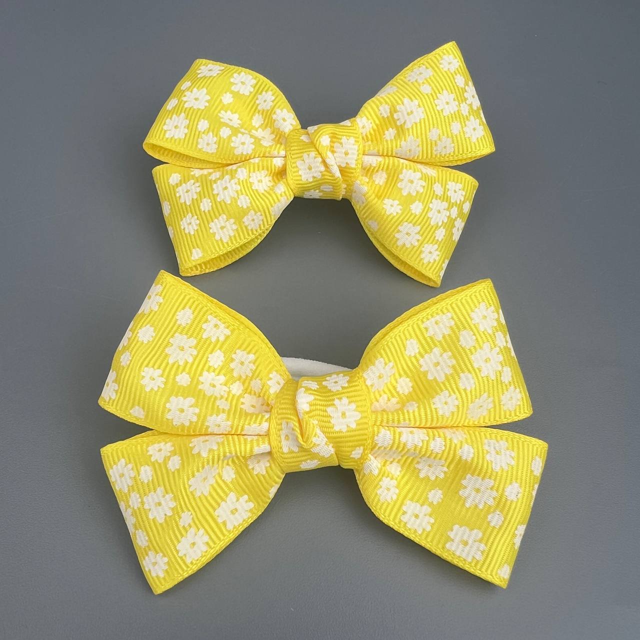 Бант для волос "маленькая принцесса" на резинке жёлтый 2 шт в цветочек