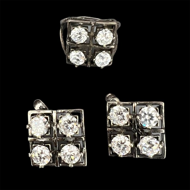 Набор кольцо и серьги с белым камнем (мельхиор)