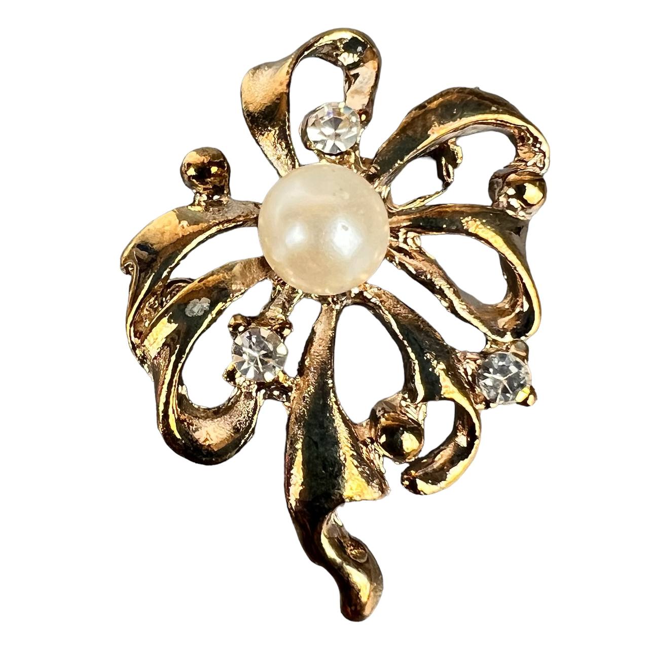 Брошь с жемчугом цветок золото