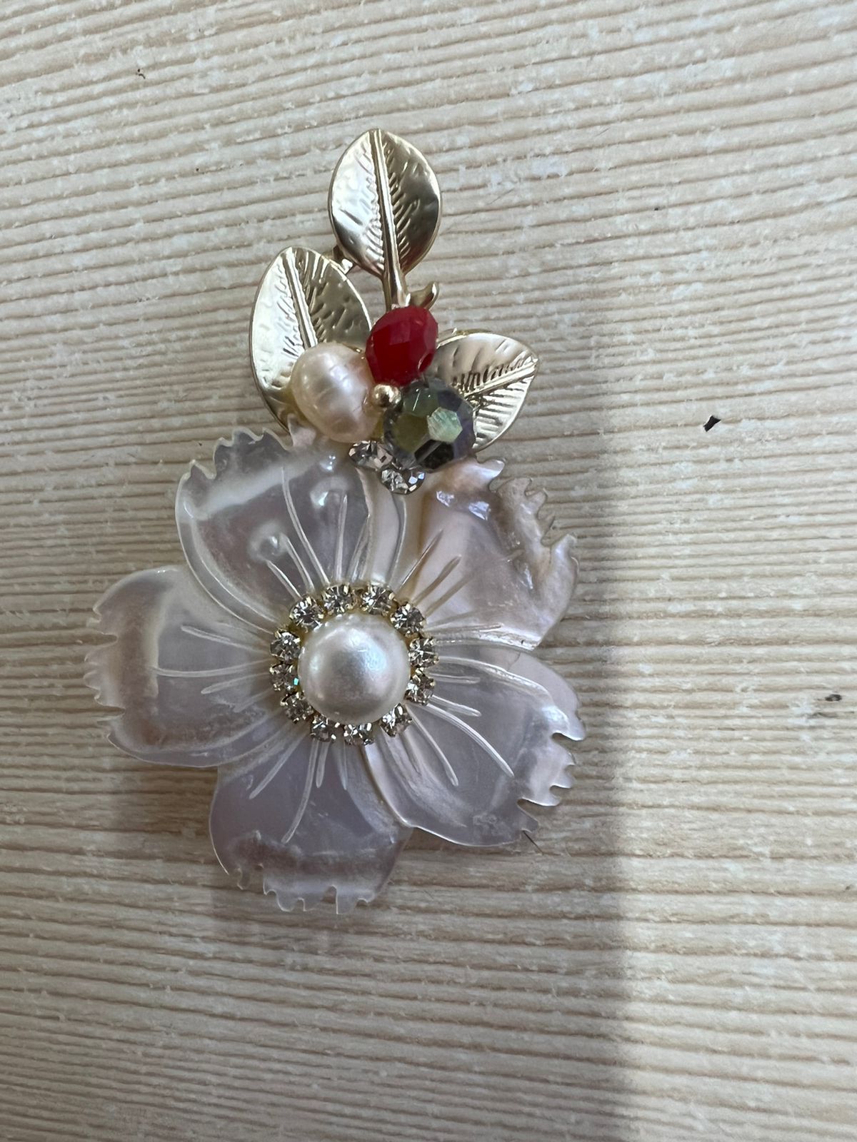 Брошь с натуральным камнем цветок перломутр 1 шт