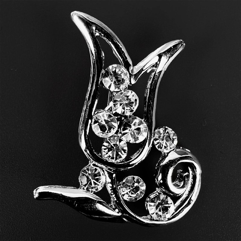 Детская брошь тюльпан со стразами 1 шт серебро