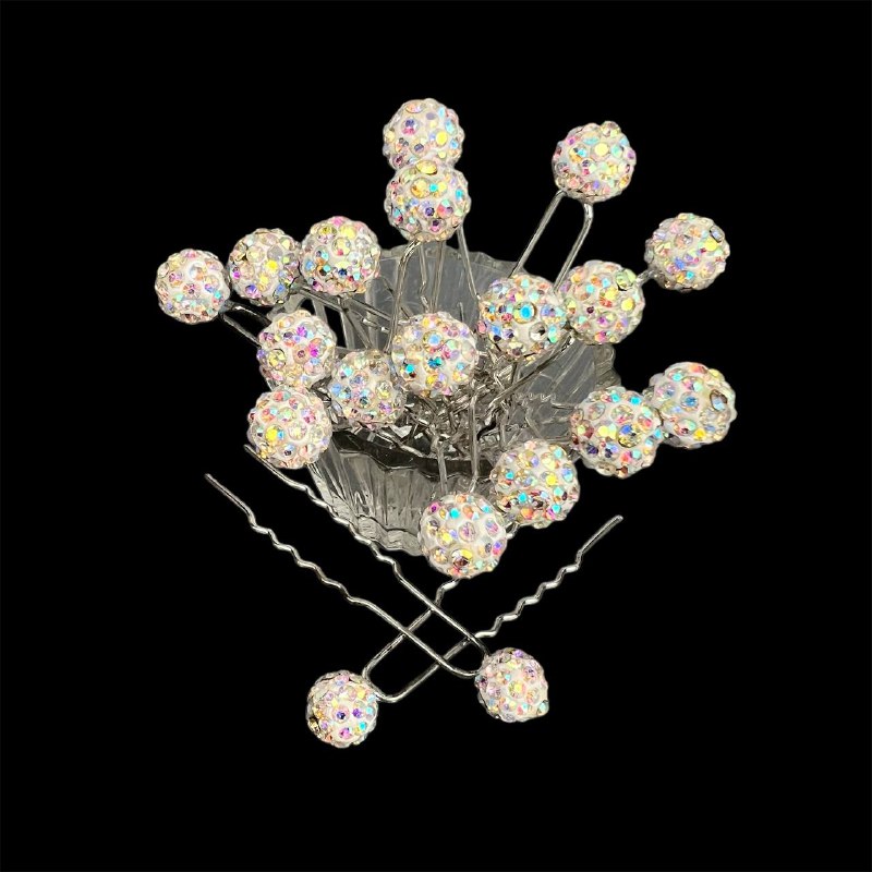 Шпильки для волос с бусиной шамбала 20 шт белые АВ 42/9