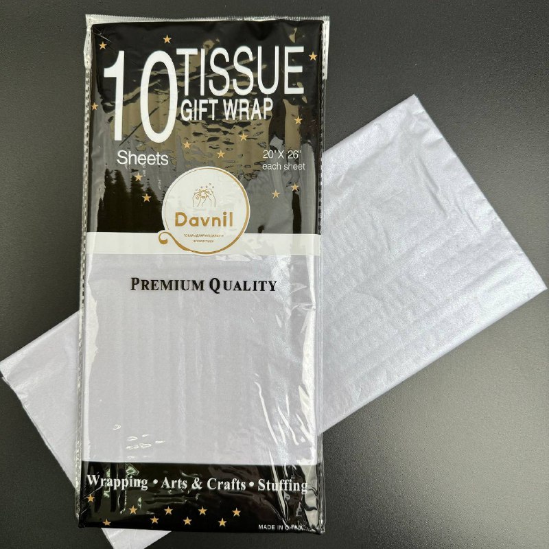 Бумага тишью, известна как папиросная - это материал, изготовленный из хвойных деревьев. Имеет воздушную структуру, обладает пластичностью, эластичностью, хрупкостью, приятна на ощупь. Обладает противоударными свойствами, поэтому часто используют для укомплектования хрупких товаров. Используют для обертывания и упаковки подарков. Кладут в коробки для заполнения пустого пространства.