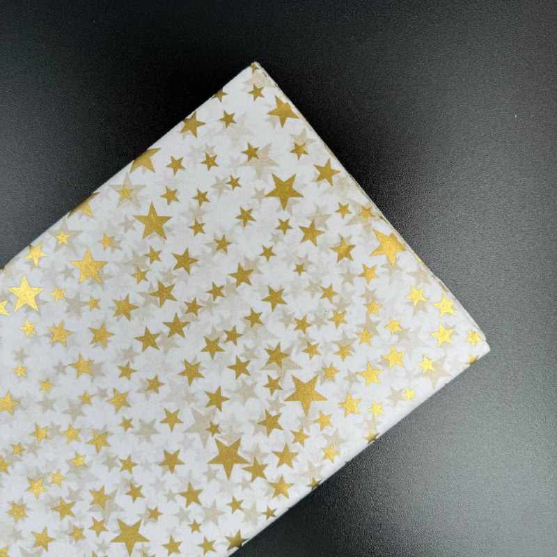 Бумага тишью 50*66 см 10 шт белая мелкие золотые звезды 3