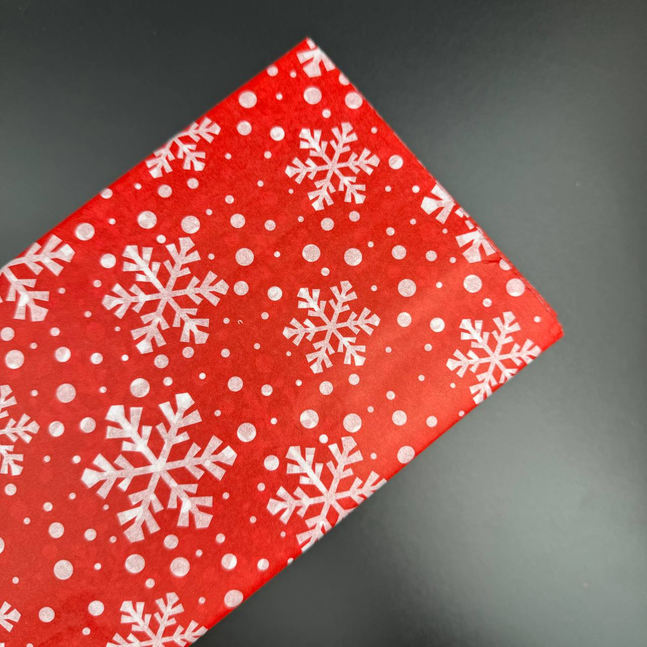 Бумага тишью 50*66 см 10 шт красная белые снежинки 6