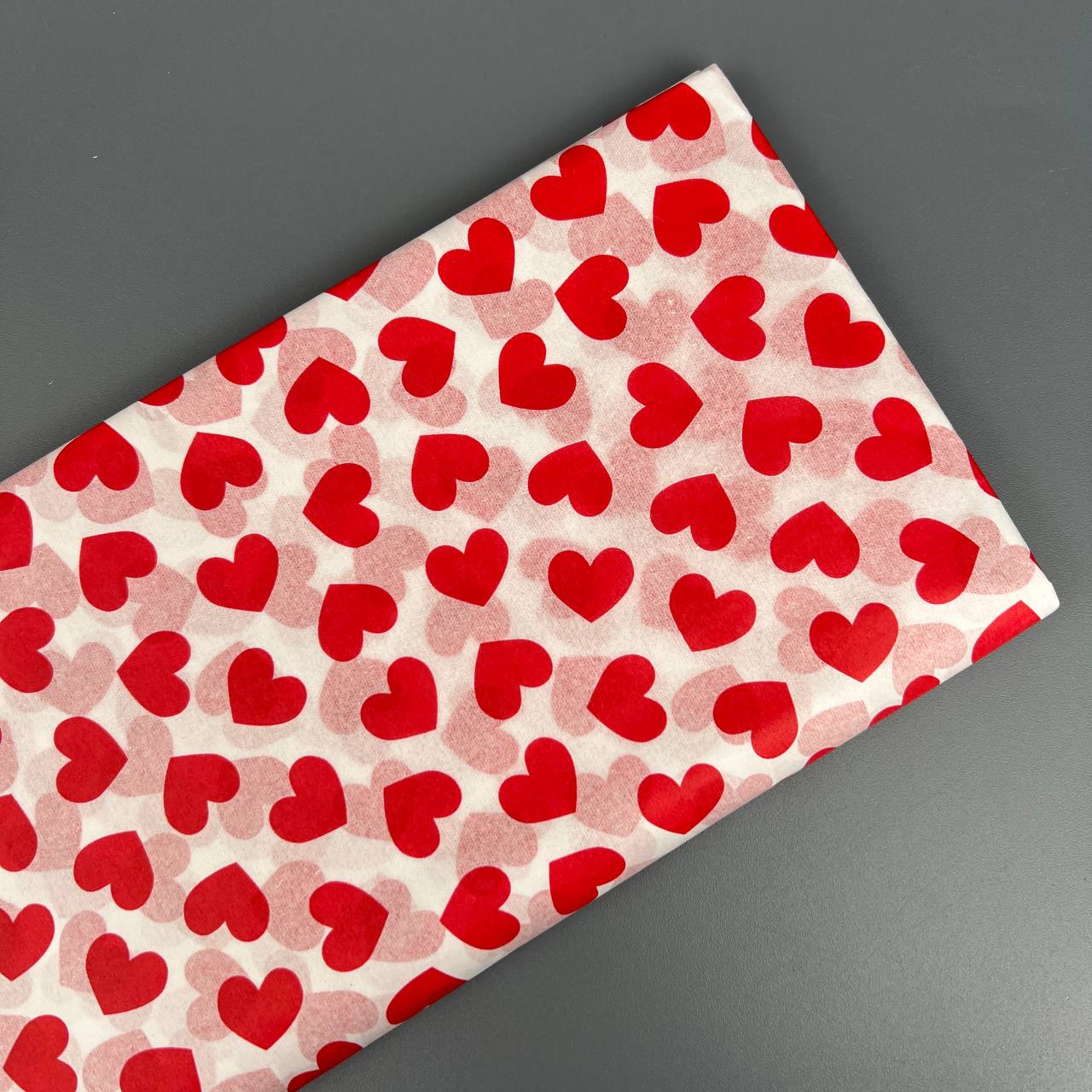 Бумага тишью 50*66 см 10 шт белая с большими сердечками 111/55