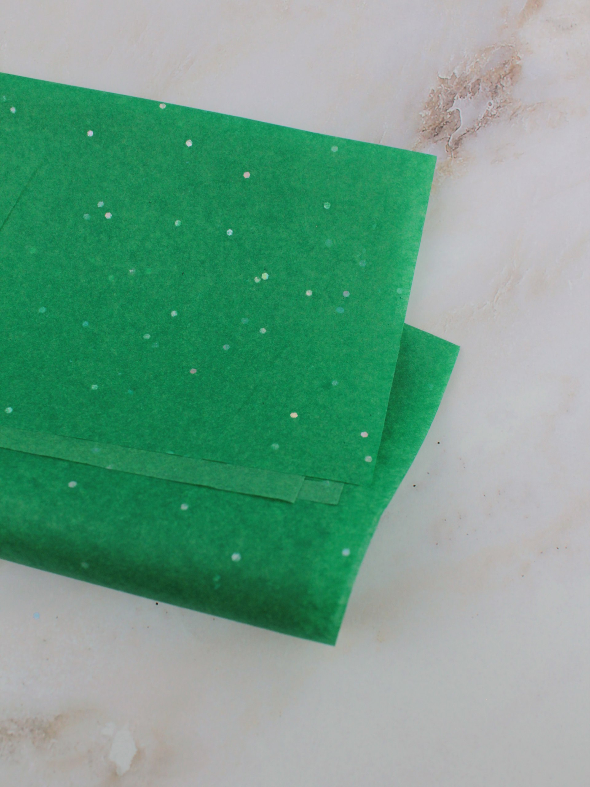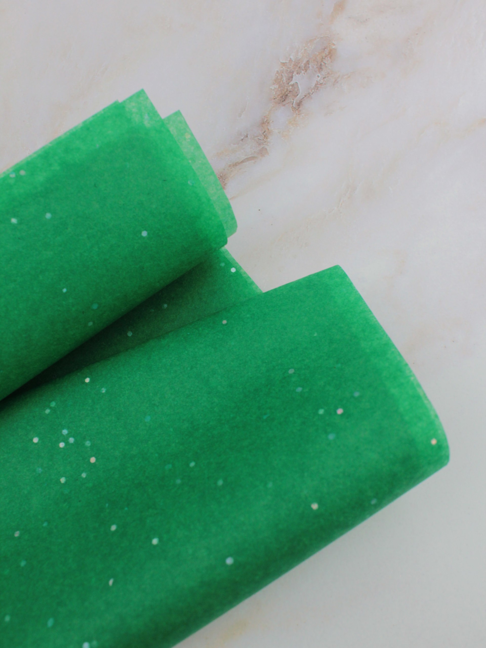 Бумага тишью 50*66 см 10 шт. зеленая с блестками